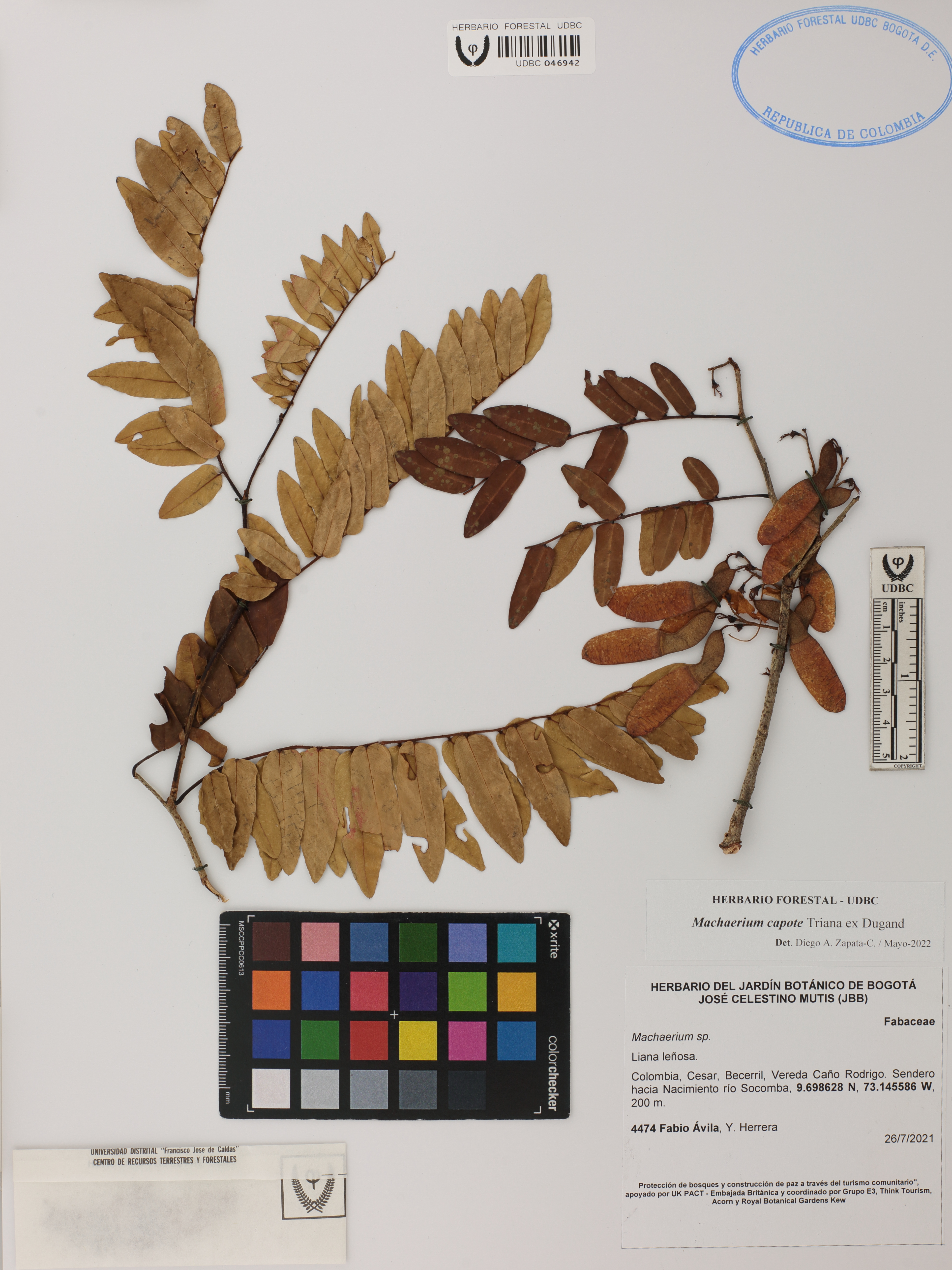 Fotografía del ejemplar Ávila, F. 4474, determinado como Machaerium capote en el año 2022