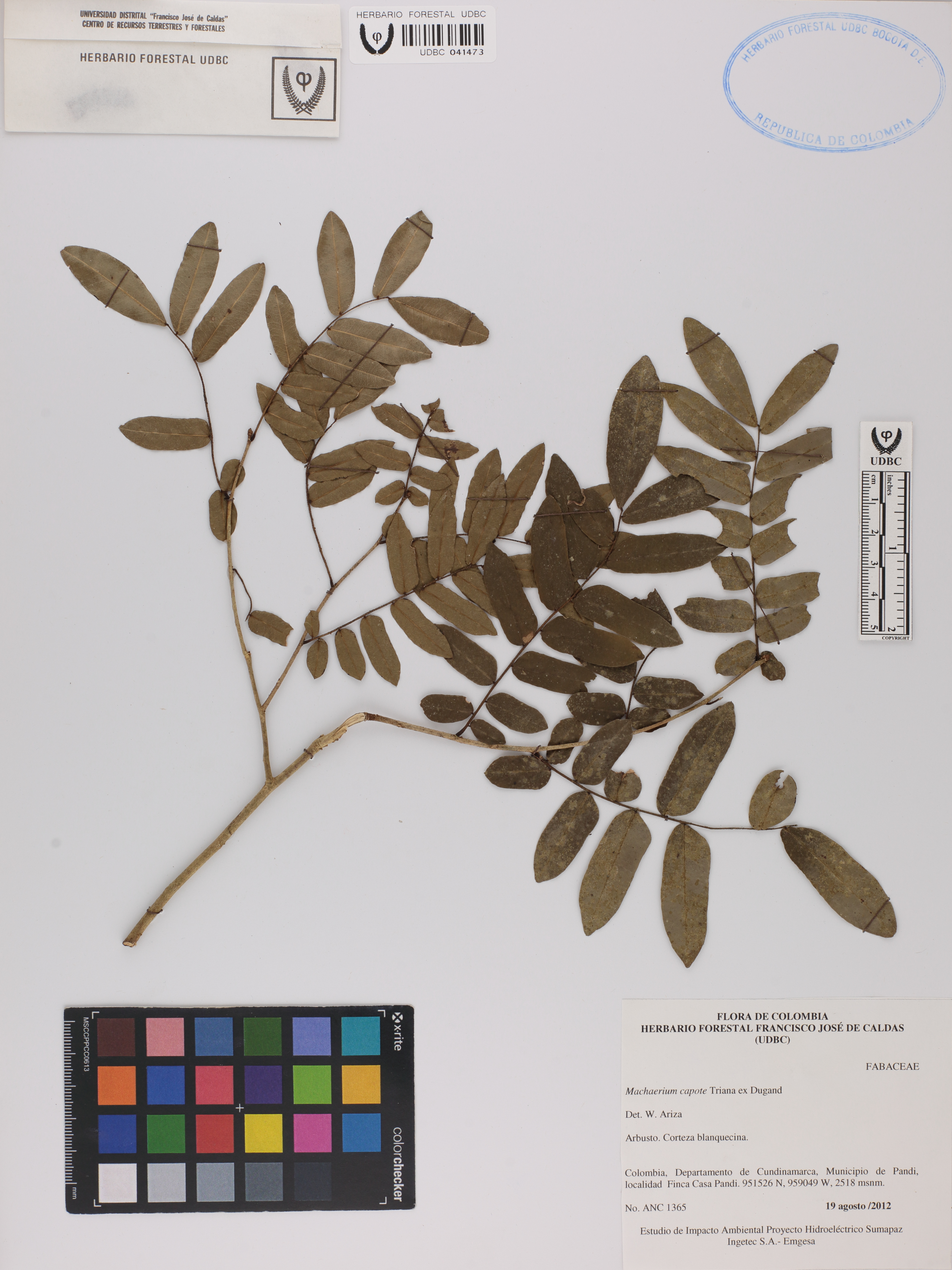 | dc.description | Fotografía del ejemplar SD 1365, determinado como Machaerium capote | |