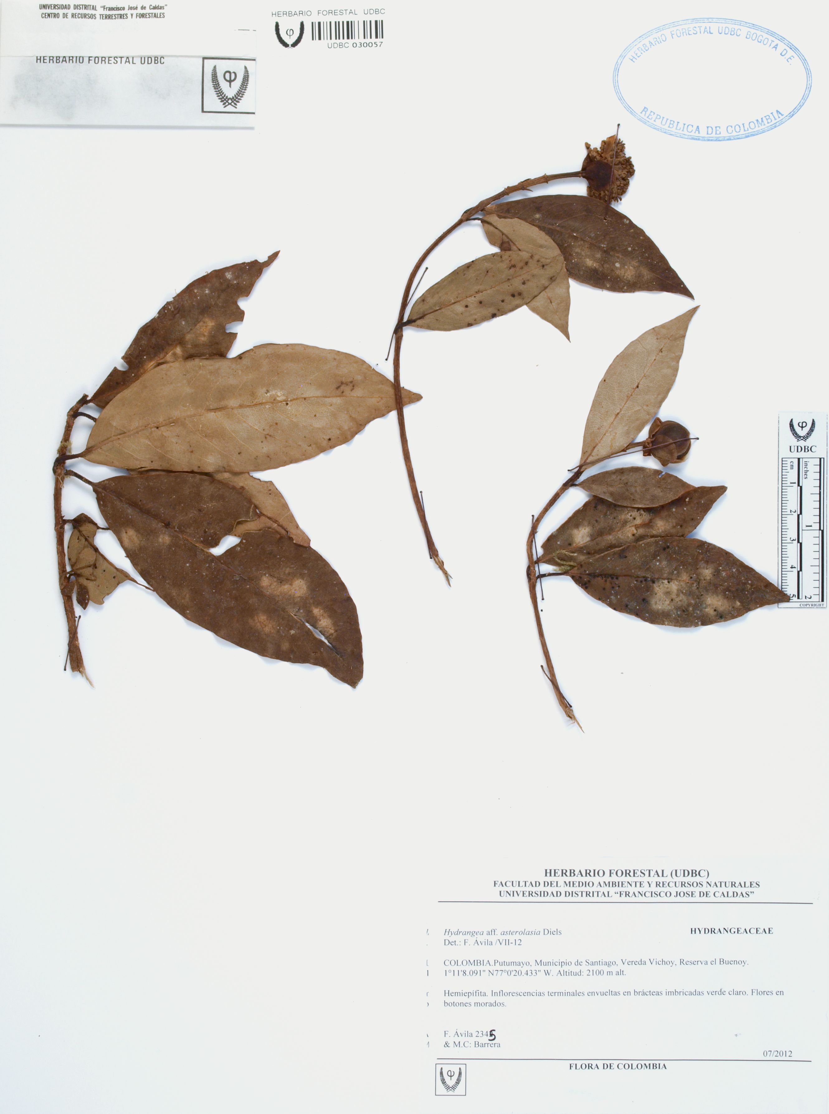 | dc.description | Fotografía del ejemplar Ávila, F. 2345, determinado como Hydrangea asterolasia en el año 2012 | |