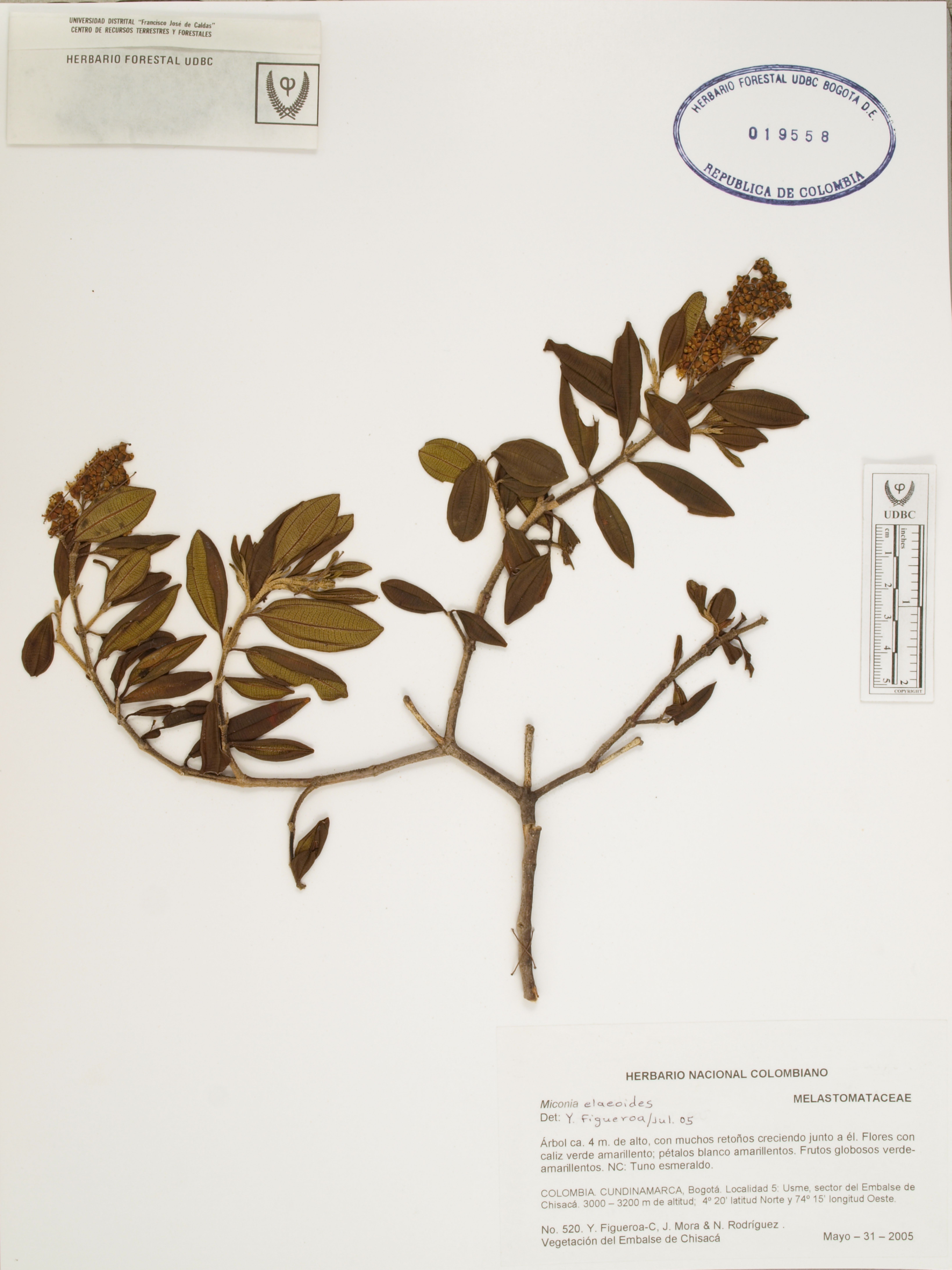 Fotografía del ejemplar Figueroa, Y. 520, determinado como Miconia elaeoides en el año 2005