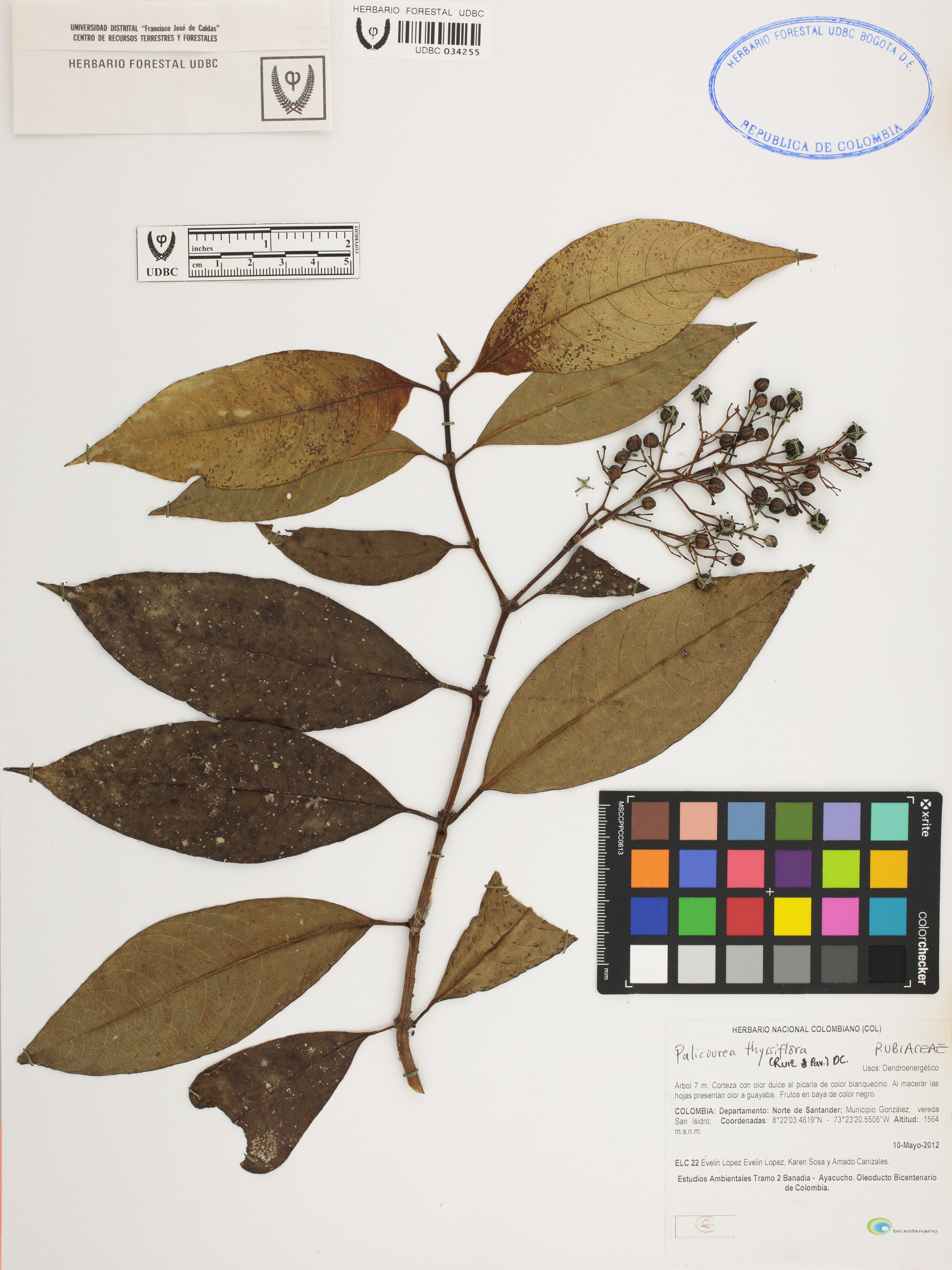Fotografía del ejemplar López, E. 22, determinado como Palicourea thyrsiflora