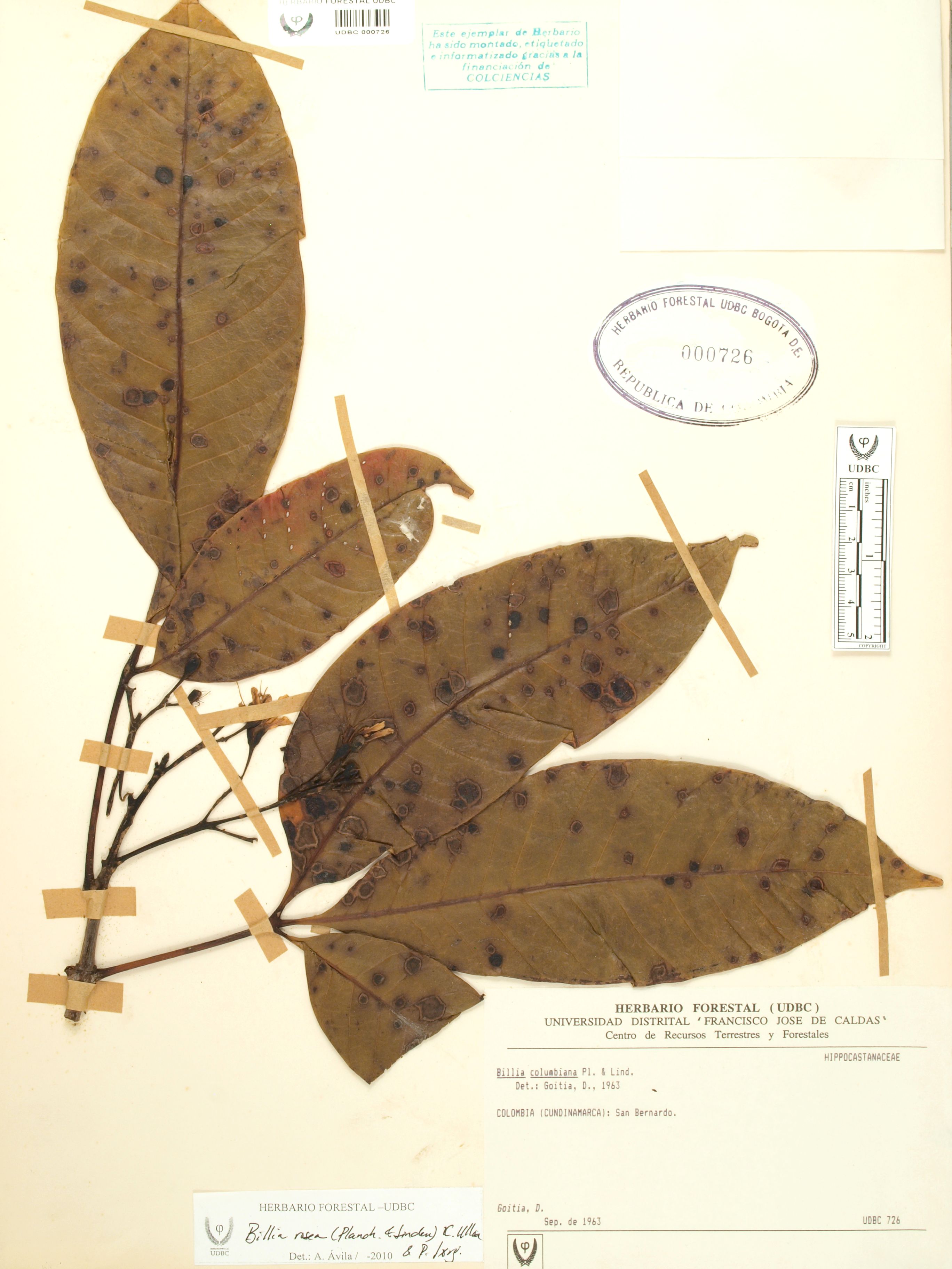 Fotografía del ejemplar Goitia, D., determinado como Billia rosea en el año 2010