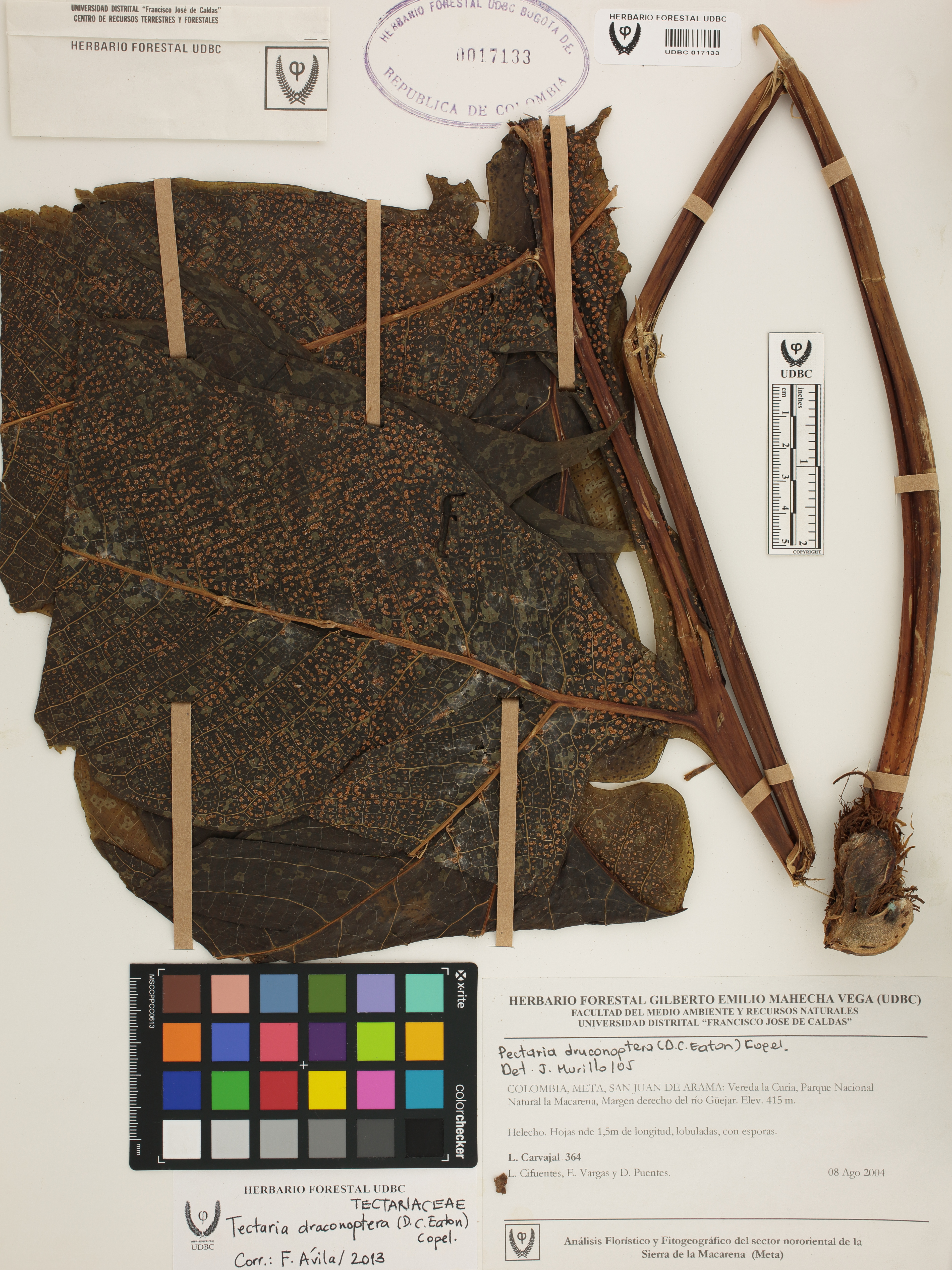 Fotografía del ejemplar Carvajal, L. 364, determinado como Tectaria draconoptera en el año 2013