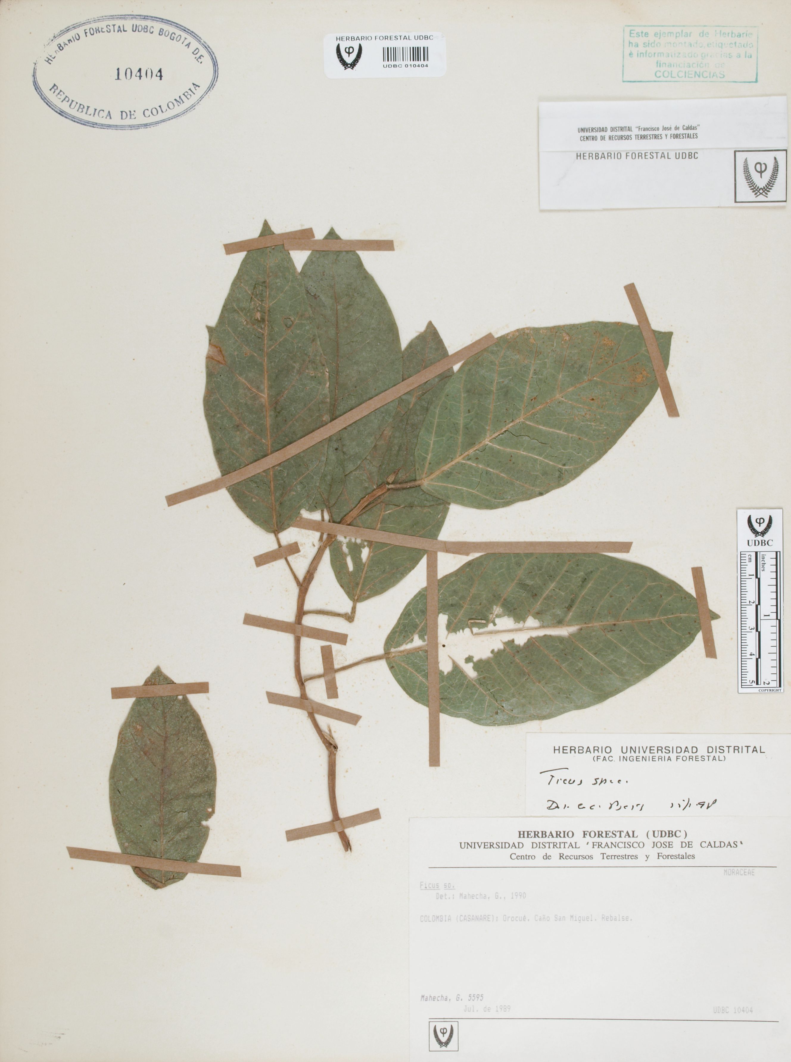 Fotografía del ejemplar Mahecha, G. 5595, determinado como Ficus sp. en el año 1995