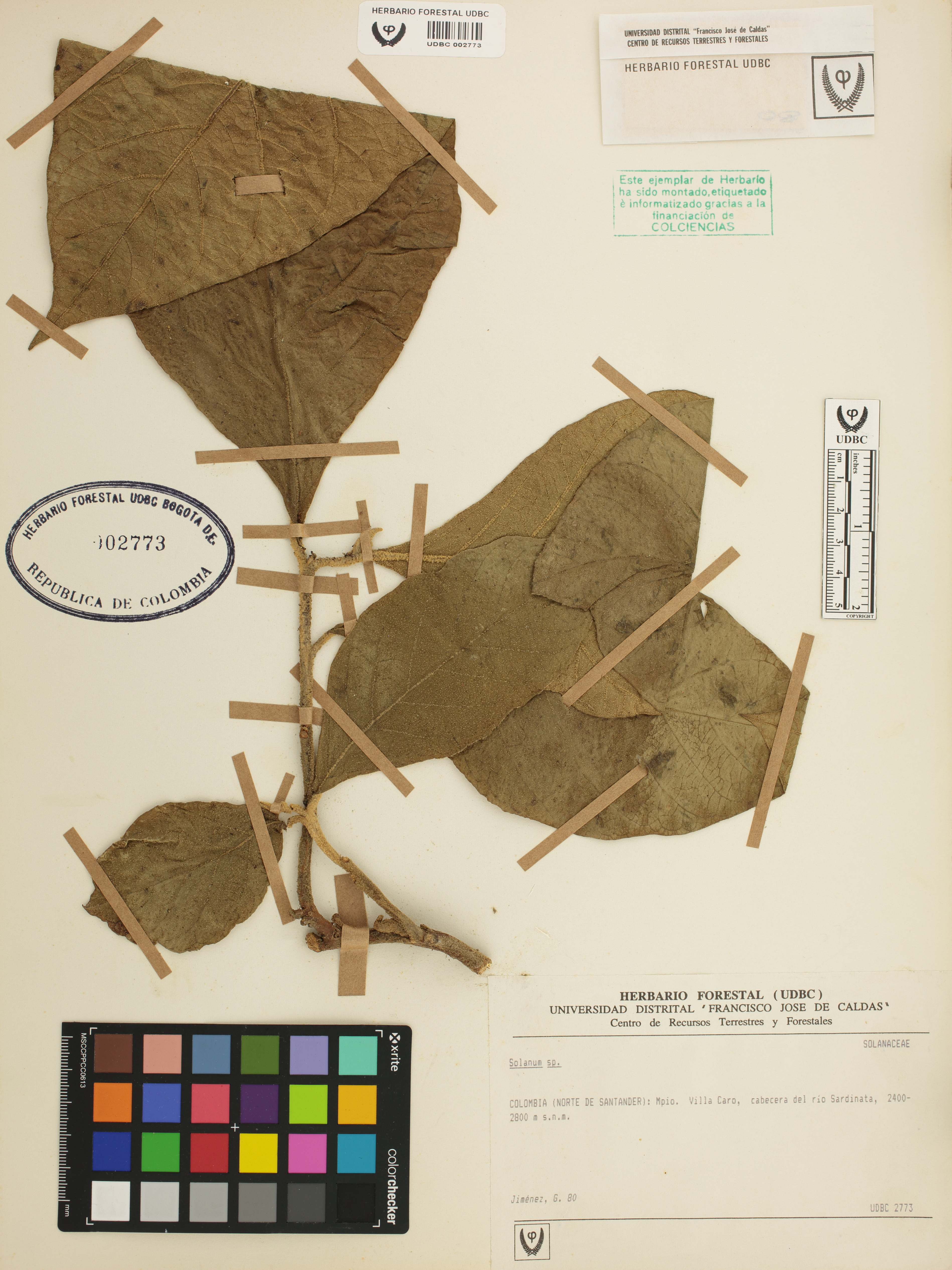 Fotografía del ejemplar Jiménez, G. 80, determinado como Solanum sp.