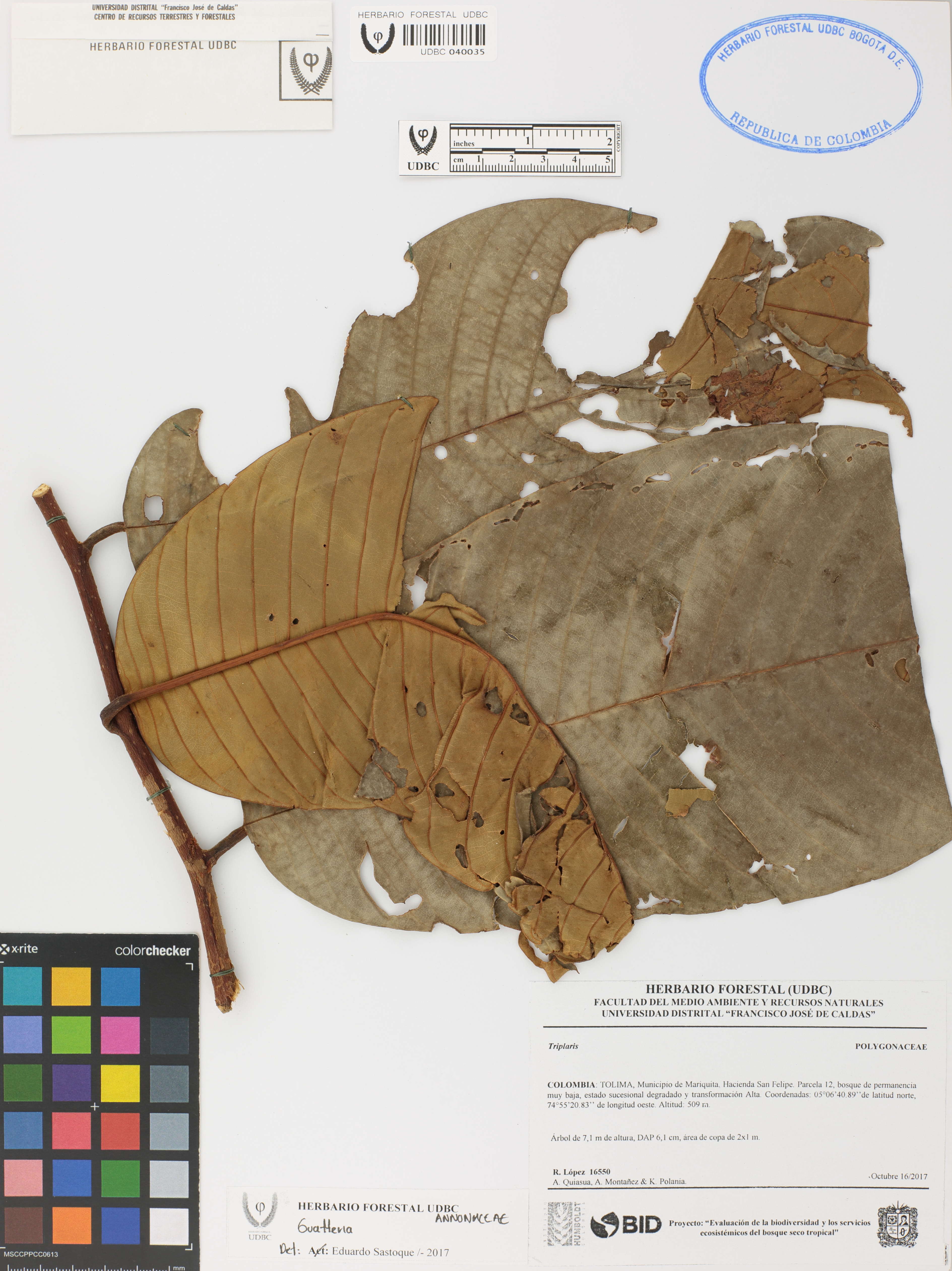 Fotografía del ejemplar López, R. 16550, determinado como Annona rufinervis en el año 2022