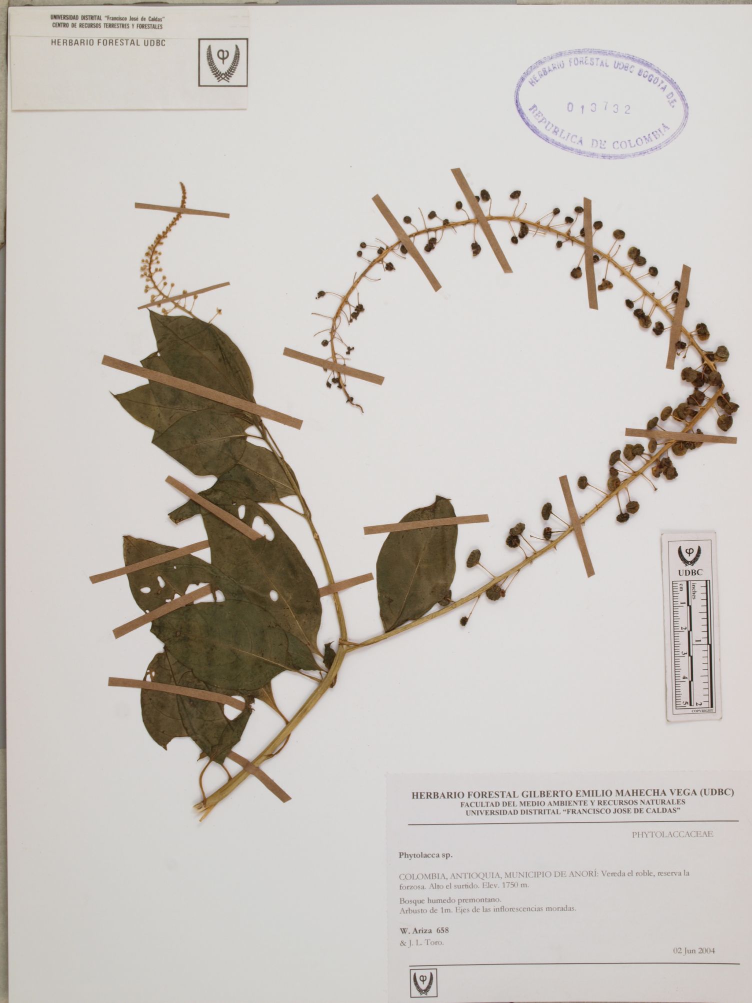| dc.description | Fotografía del ejemplar Ariza, W. 658, determinado como Phytolacca sp. | |