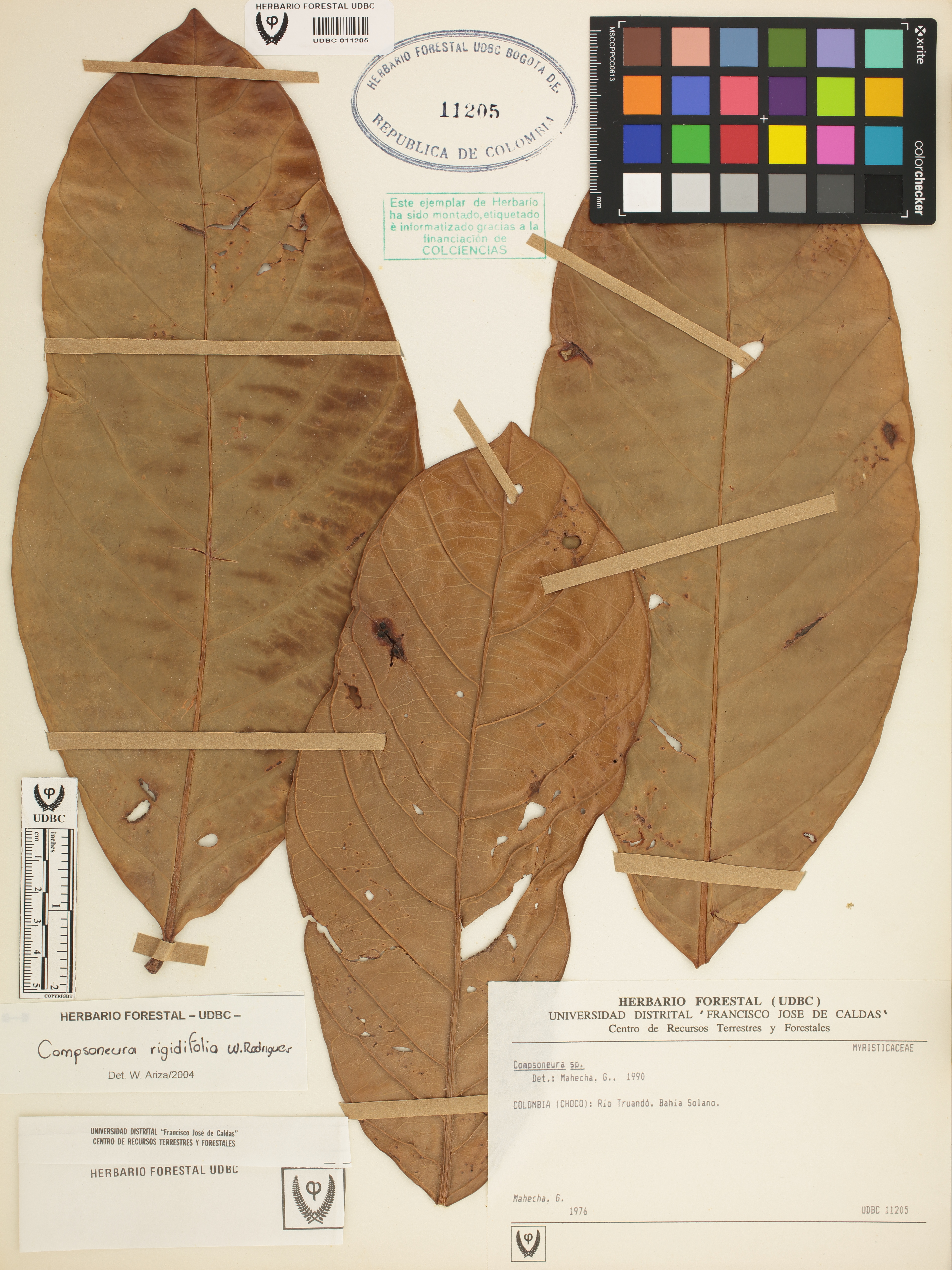 Fotografía del ejemplar Mahecha, G., determinado como Compsoneura rigidifolia en el año 2004