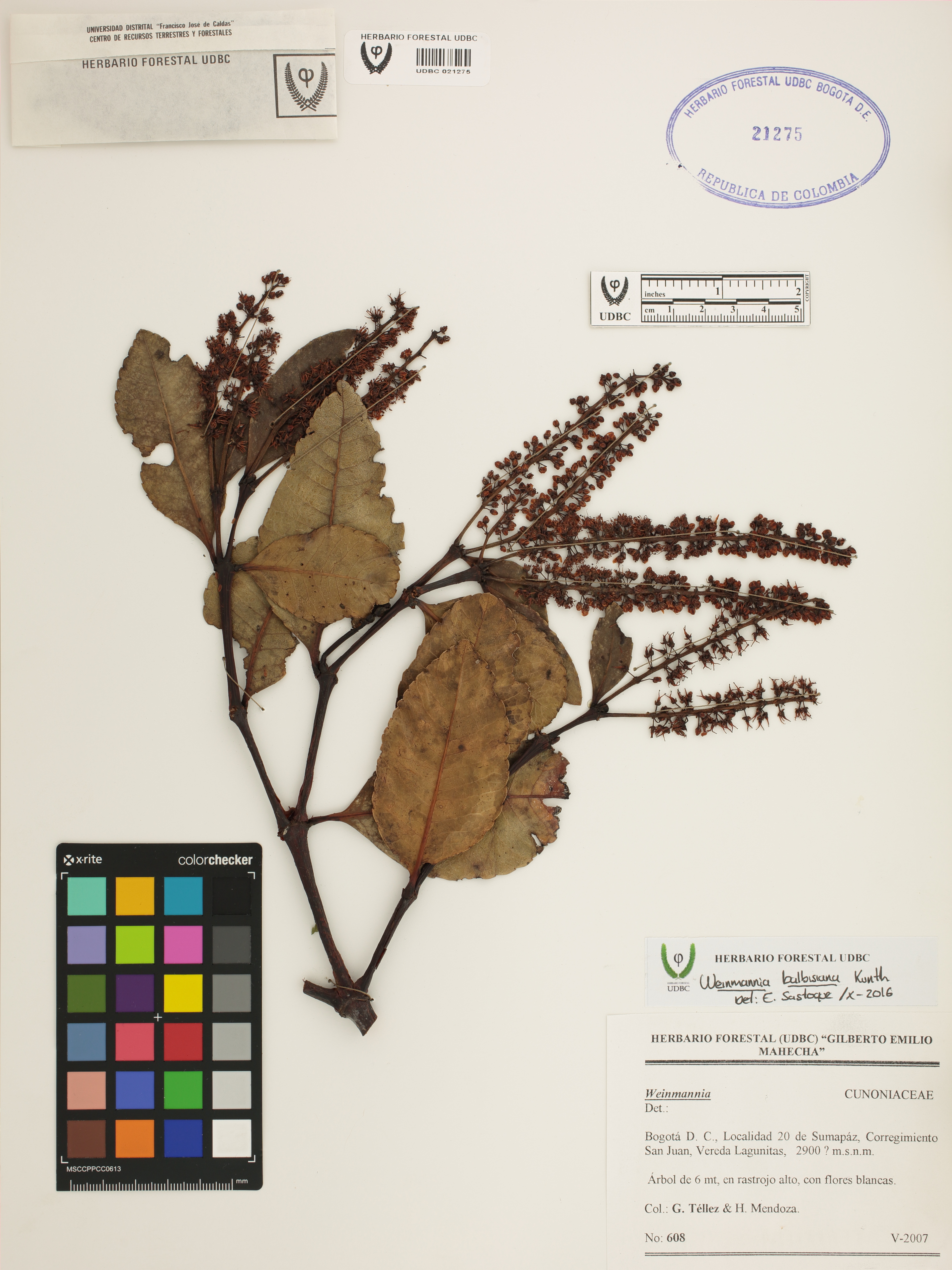 | dc.description | Fotografía del ejemplar Téllez, G. 608, determinado como Weinmannia balbisiana en el año 2016 | |