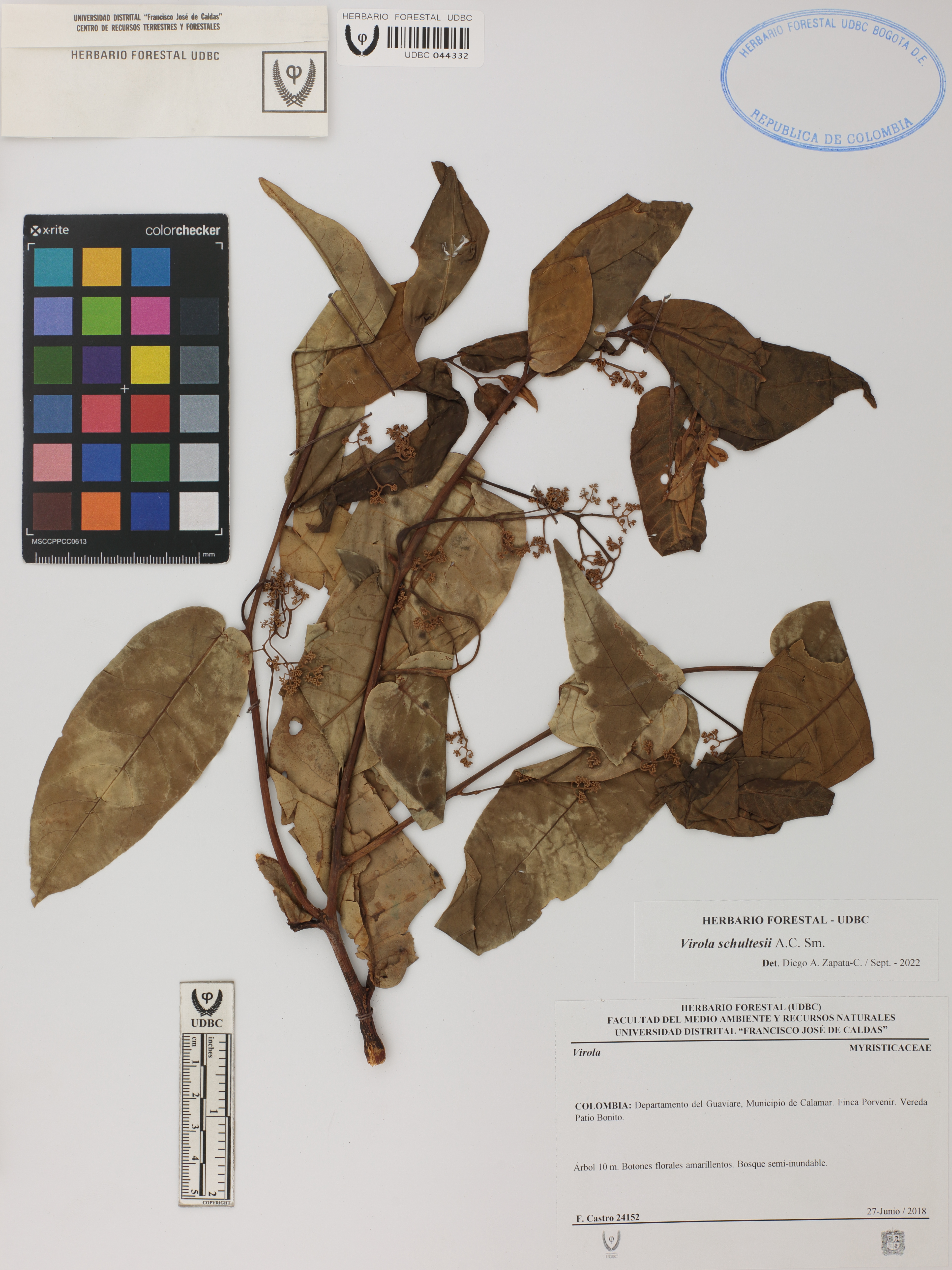 | dc.description | Fotografía del ejemplar Castro, F. 24152, determinado como Virola schultesii en el año 2022 | |