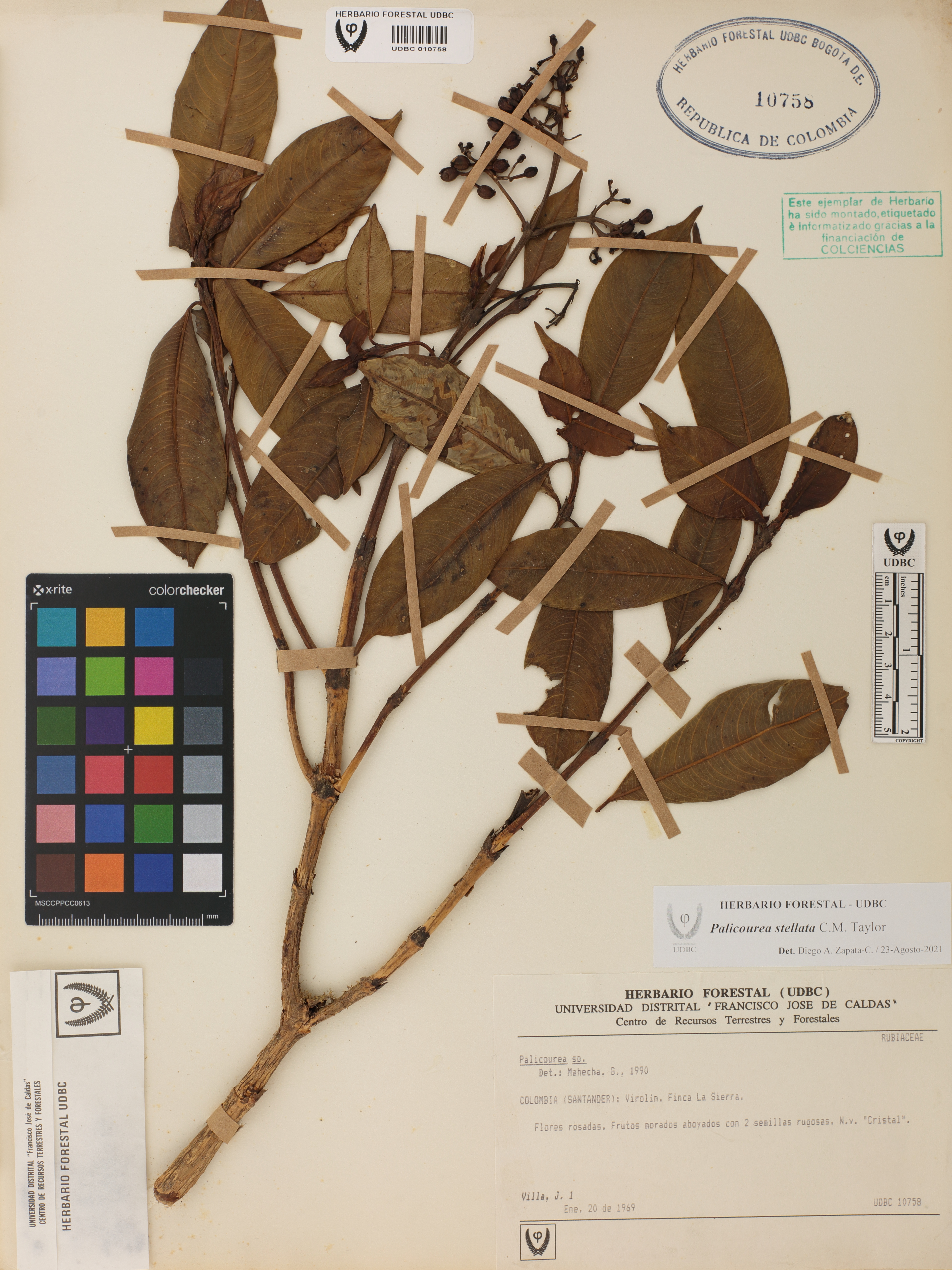 Fotografía del ejemplar Villa, J. 1, determinado como Palicourea stellata en el año 2021