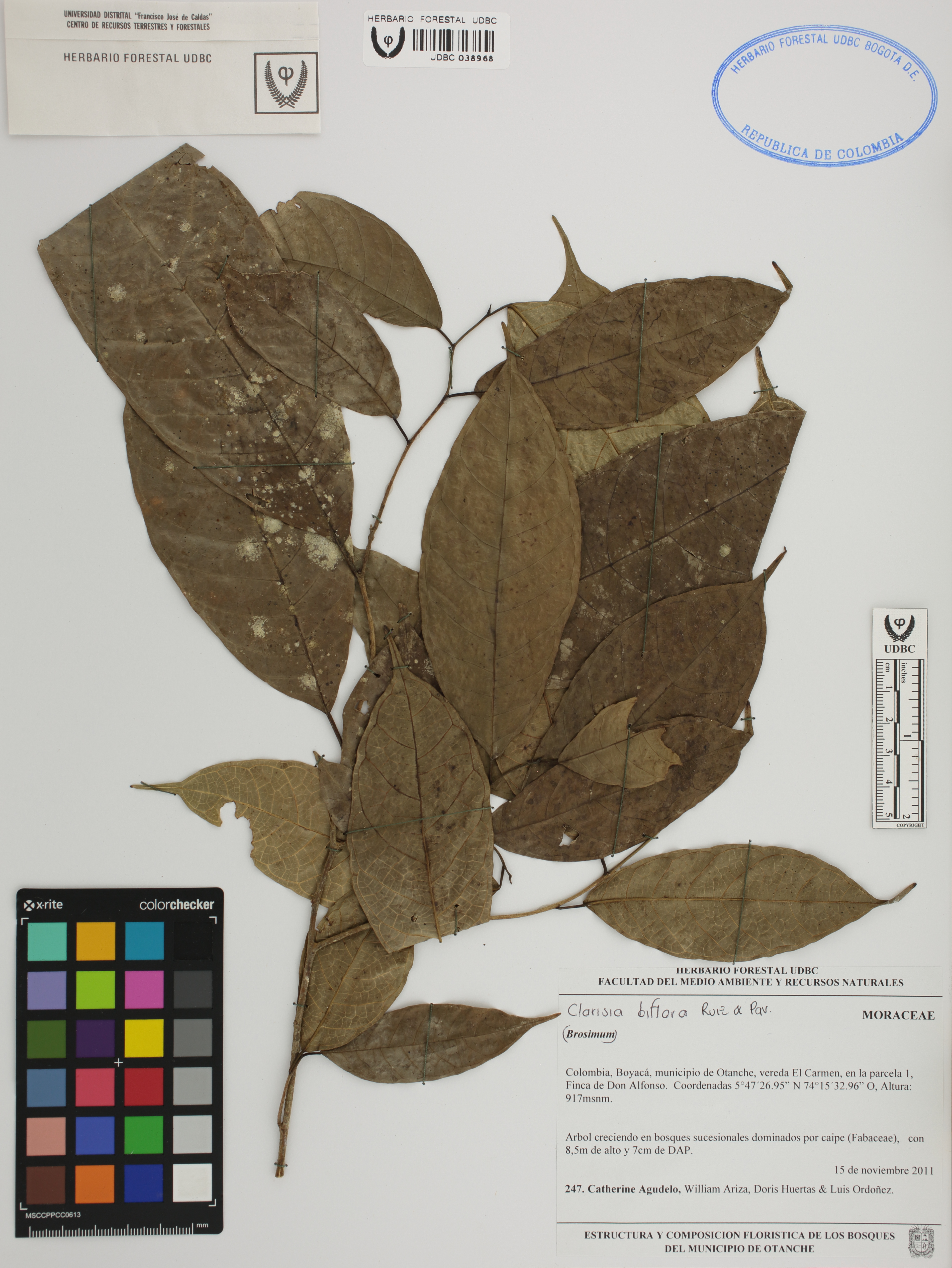 | dc.description | Fotografía del ejemplar Agudelo, C. 247, determinado como Clarisia biflora | |