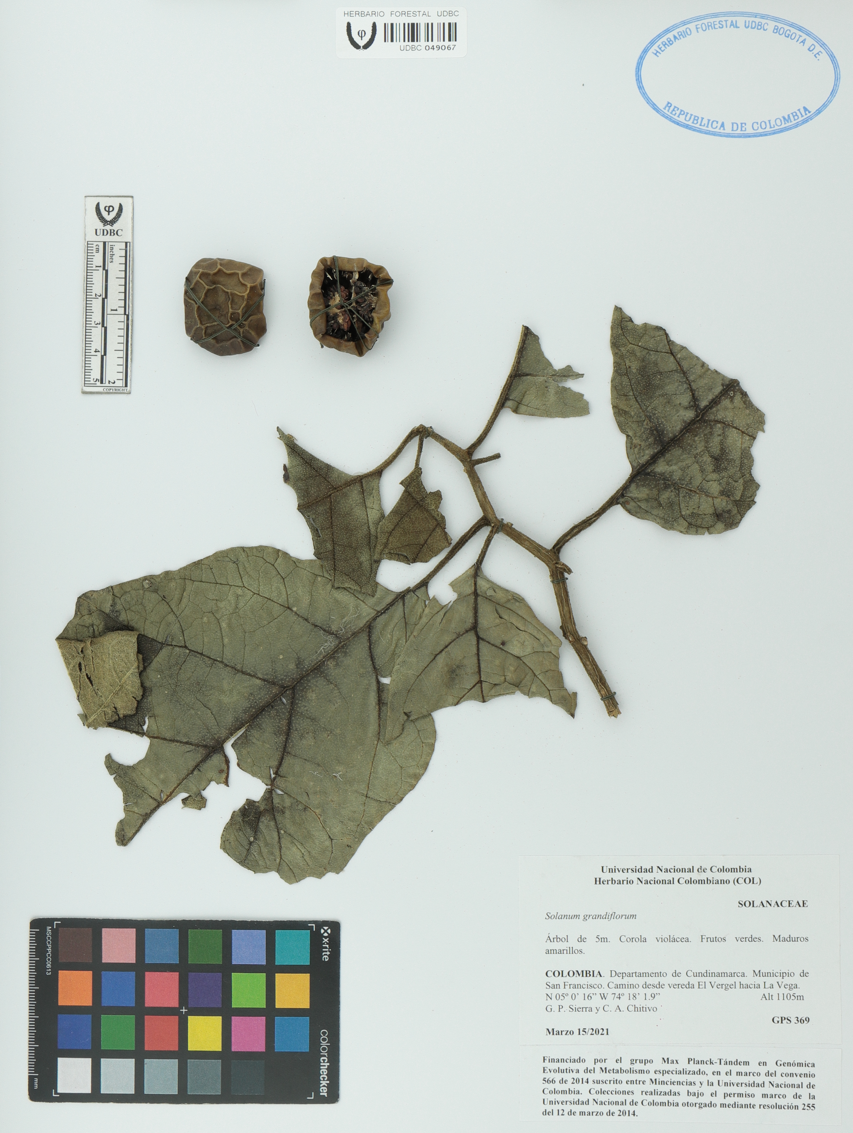 Fotografía del ejemplar Sierra, G. 369, determinado como Solanum grandiflorum