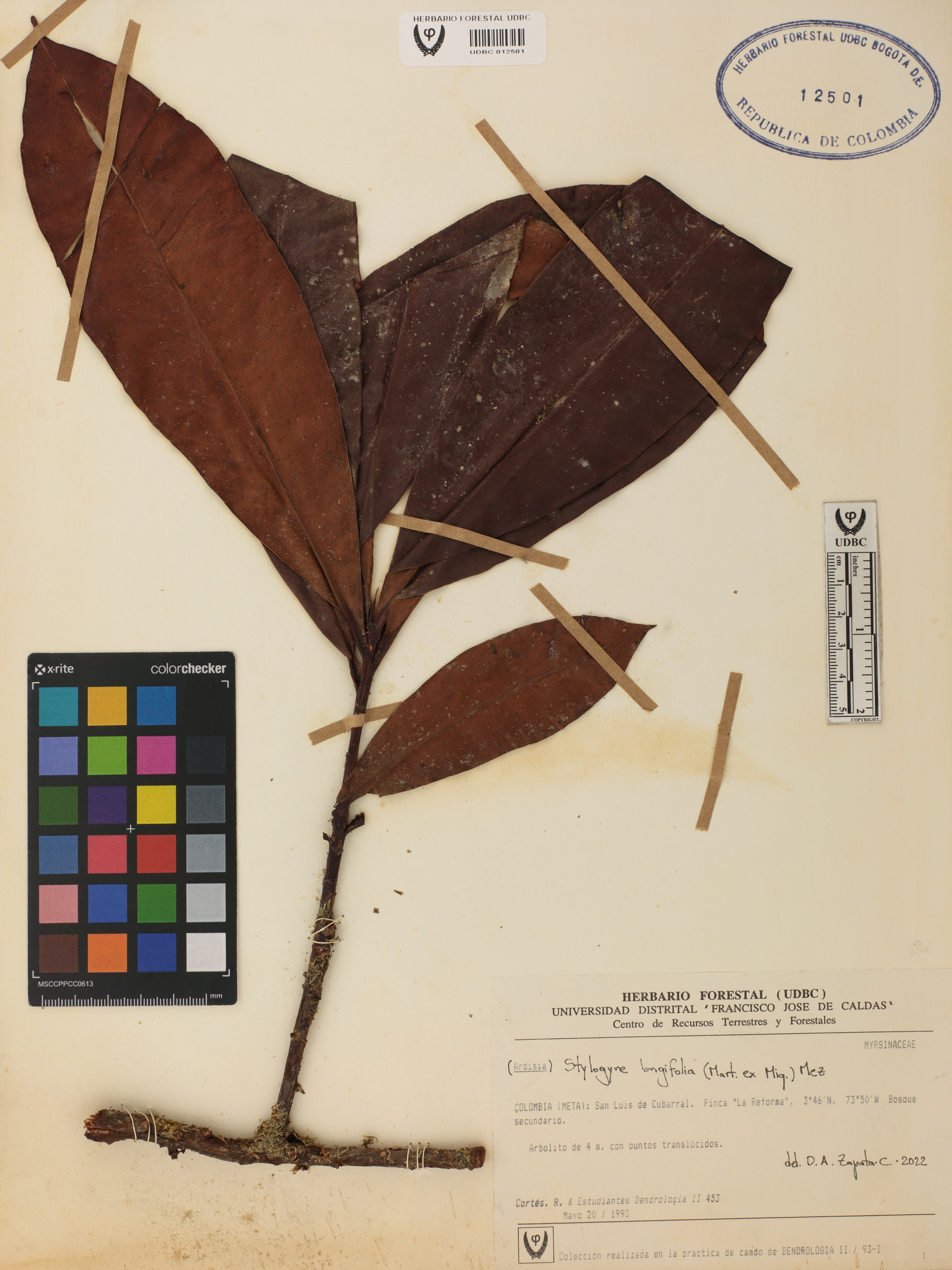 Fotografía del ejemplar Cortés-B., R. 453, determinado como Stylogyne longifolia en el año 2022