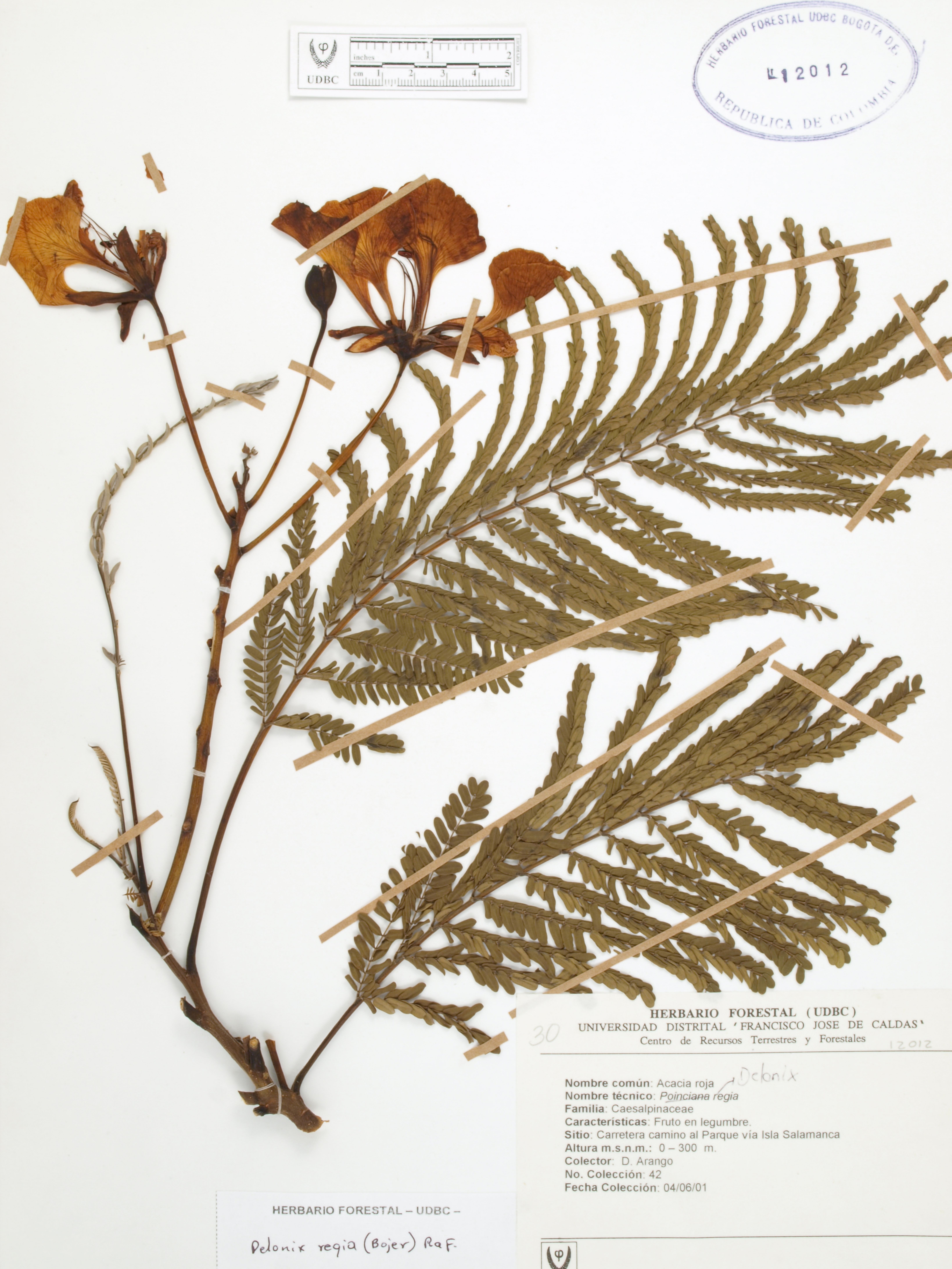 Fotografía del ejemplar Arango, D. 42, determinado como Delonix regia