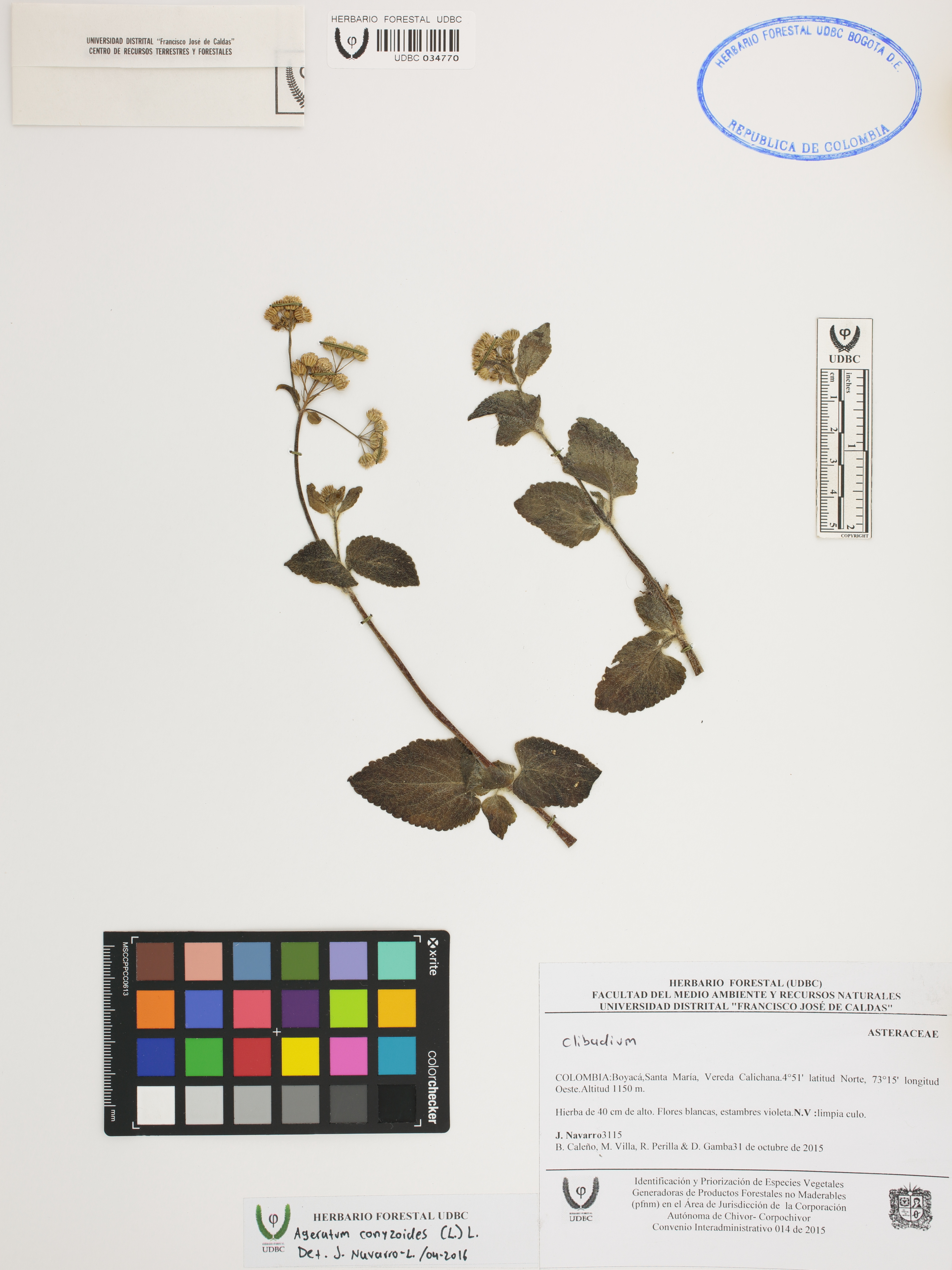 Fotografía del ejemplar Navarro, J. 3115, determinado como Ageratum conyzoides en el año 2016