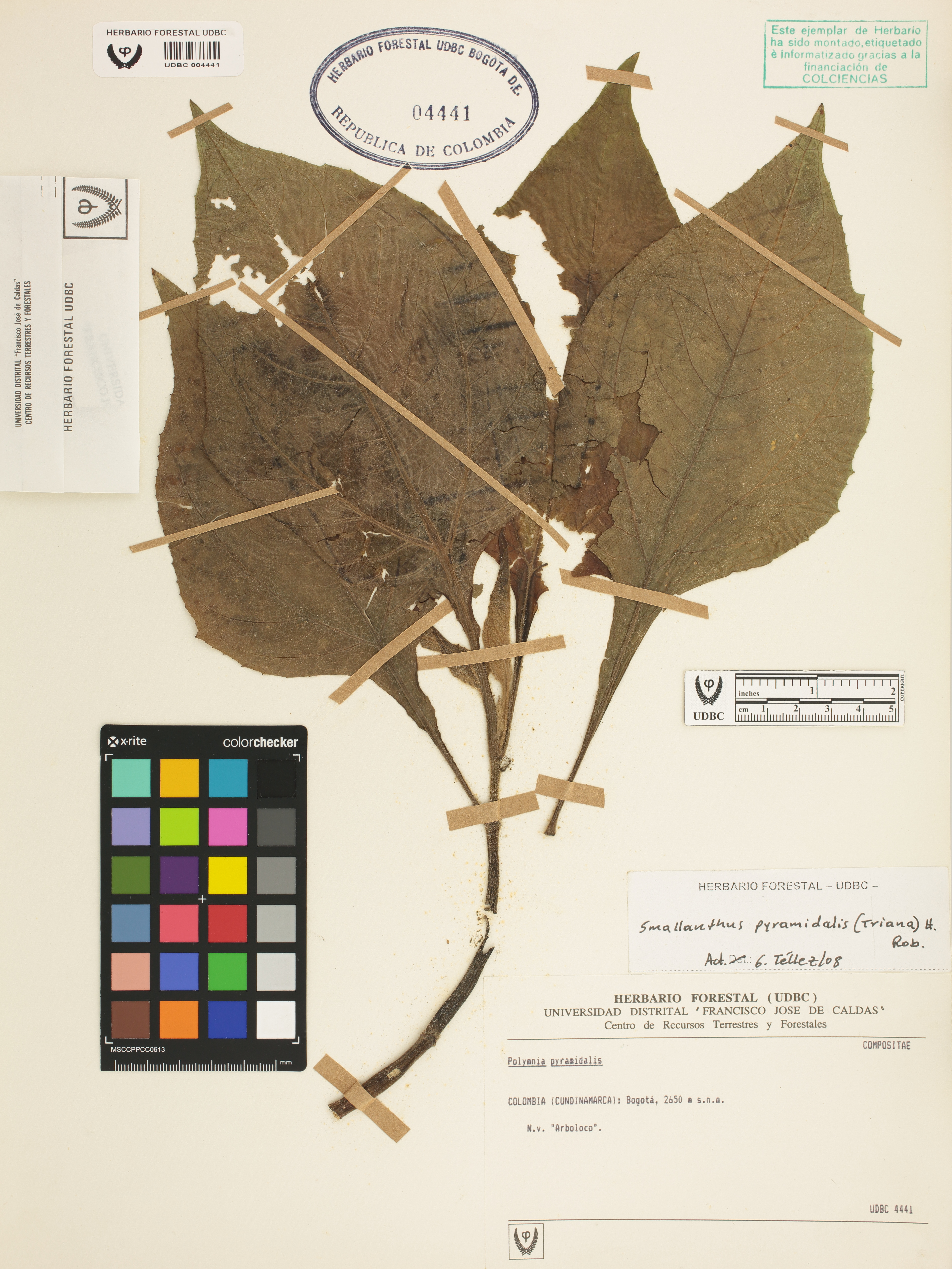Fotografía del ejemplar SD, determinado como Smallanthus pyramidalis en el año 2008