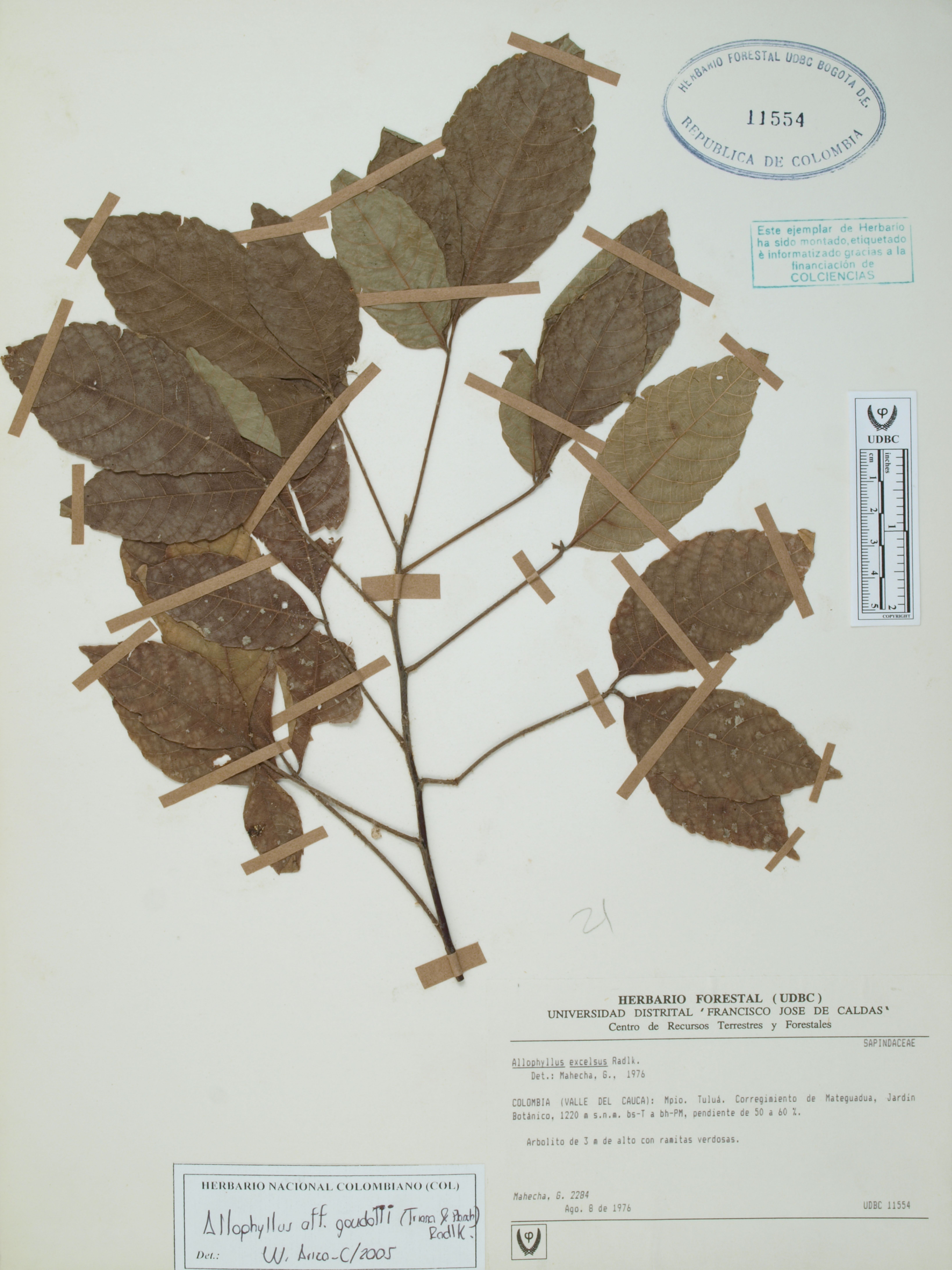 Fotografía del ejemplar SD, determinado como Allophylus goudotii en el año 2005