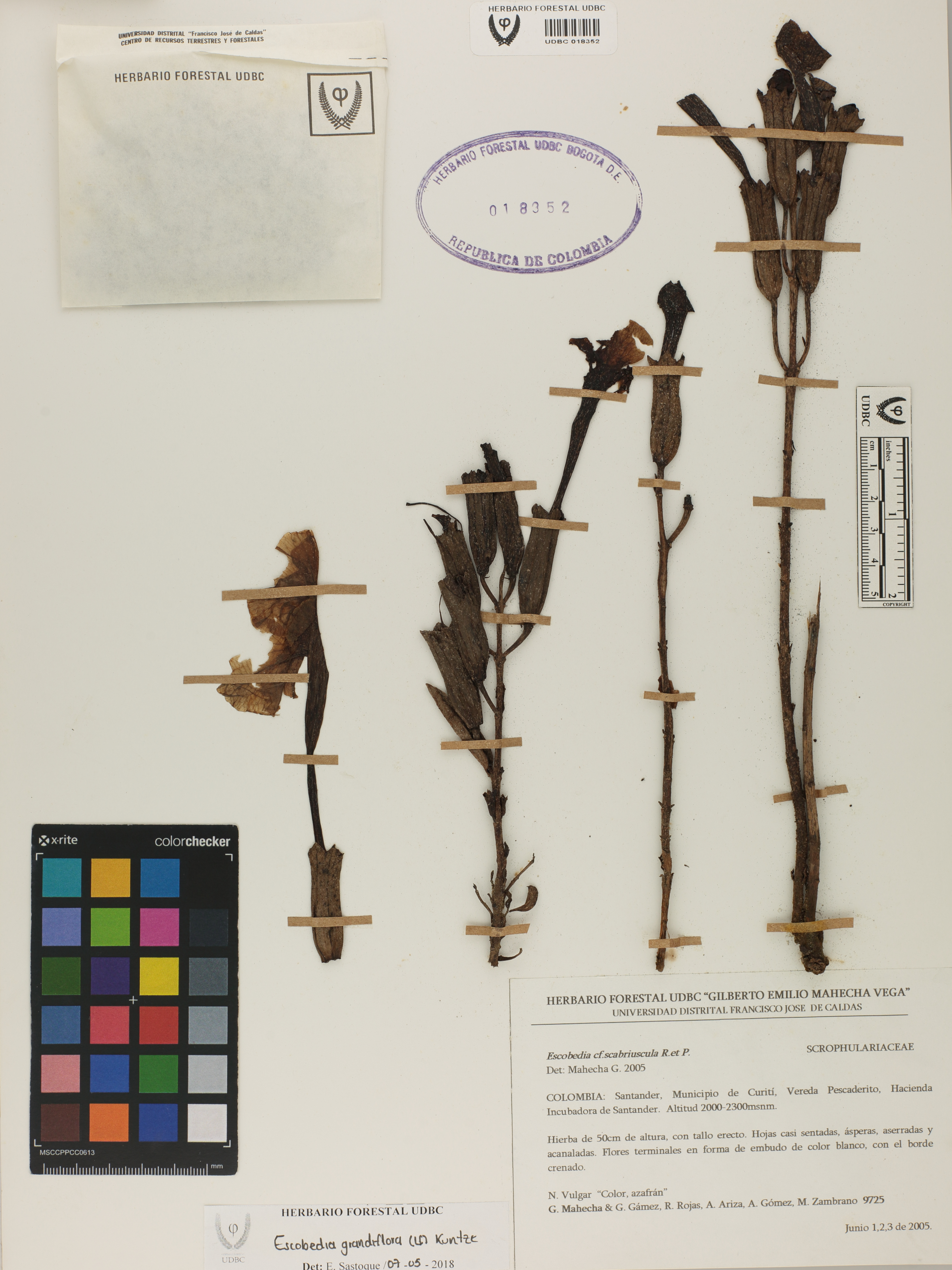 | dc.description | Fotografía del ejemplar Mahecha, G. 9725, determinado como Escobedia grandiflora en el año 2005 | |