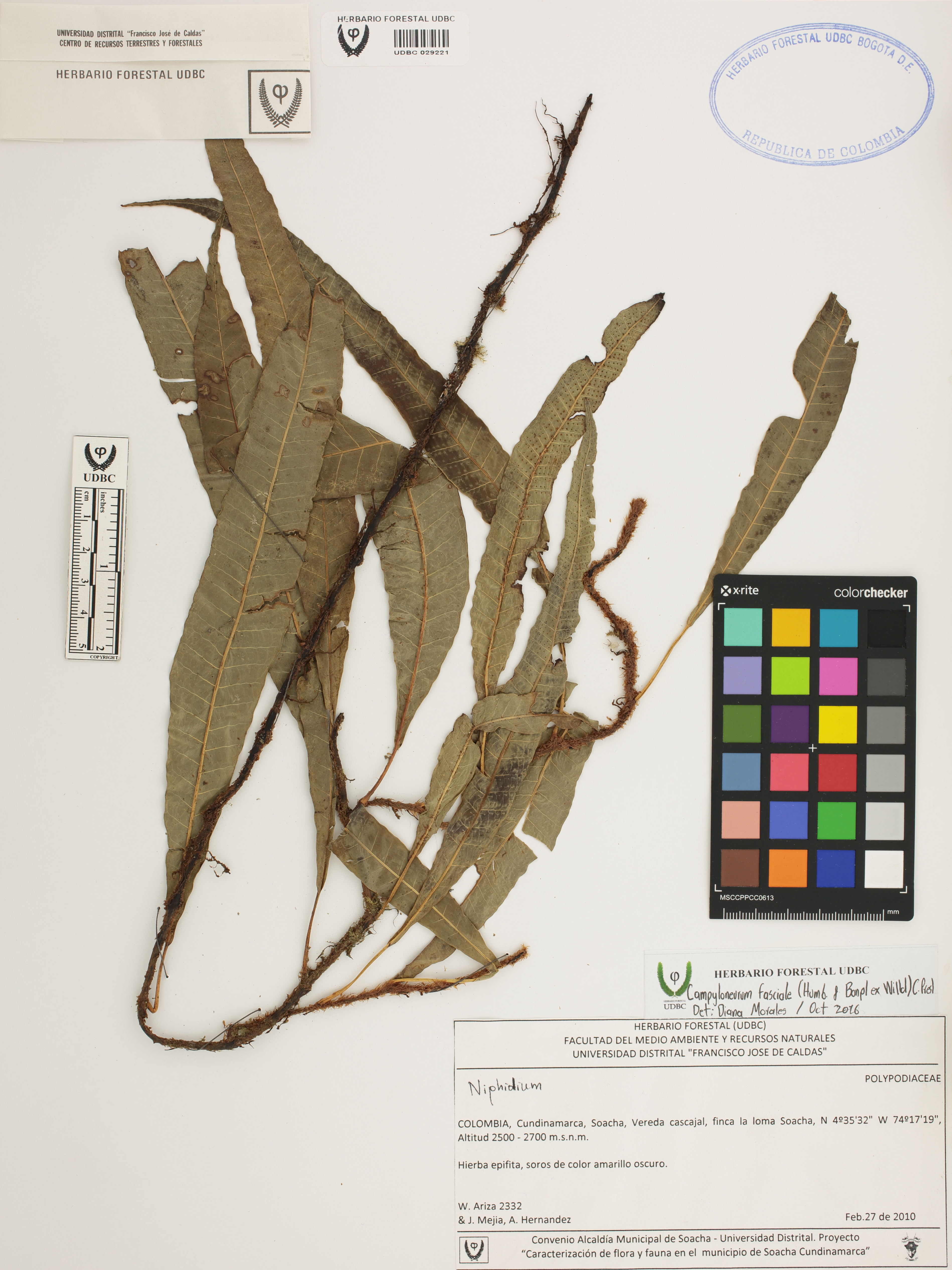 Fotografía del ejemplar Ariza, W. 2332, determinado como Campyloneurum fasciale en el año 2016