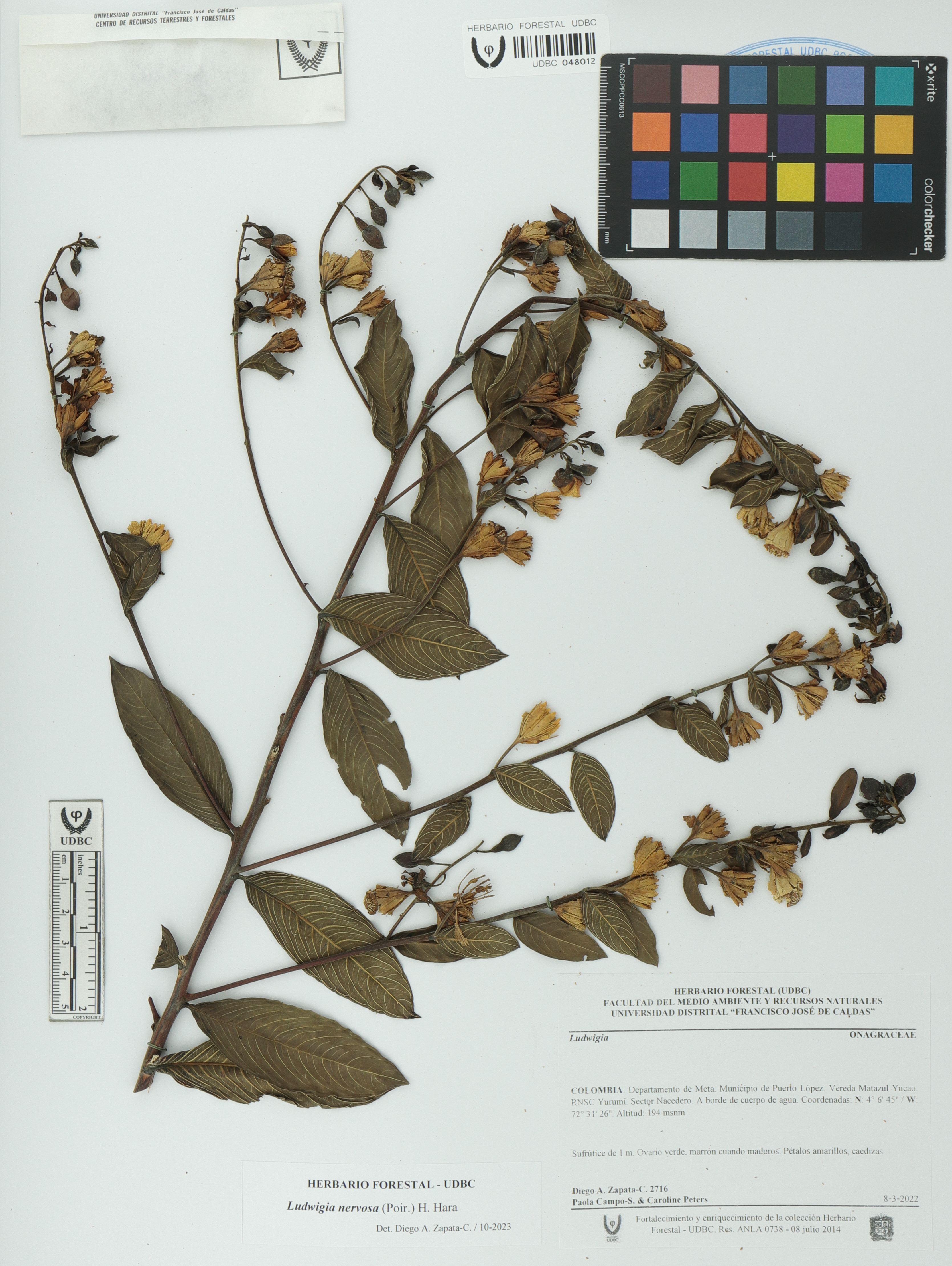 Fotografía del ejemplar Zapata-C., D. 2716, determinado como Ludwigia nervosa en el año 2023