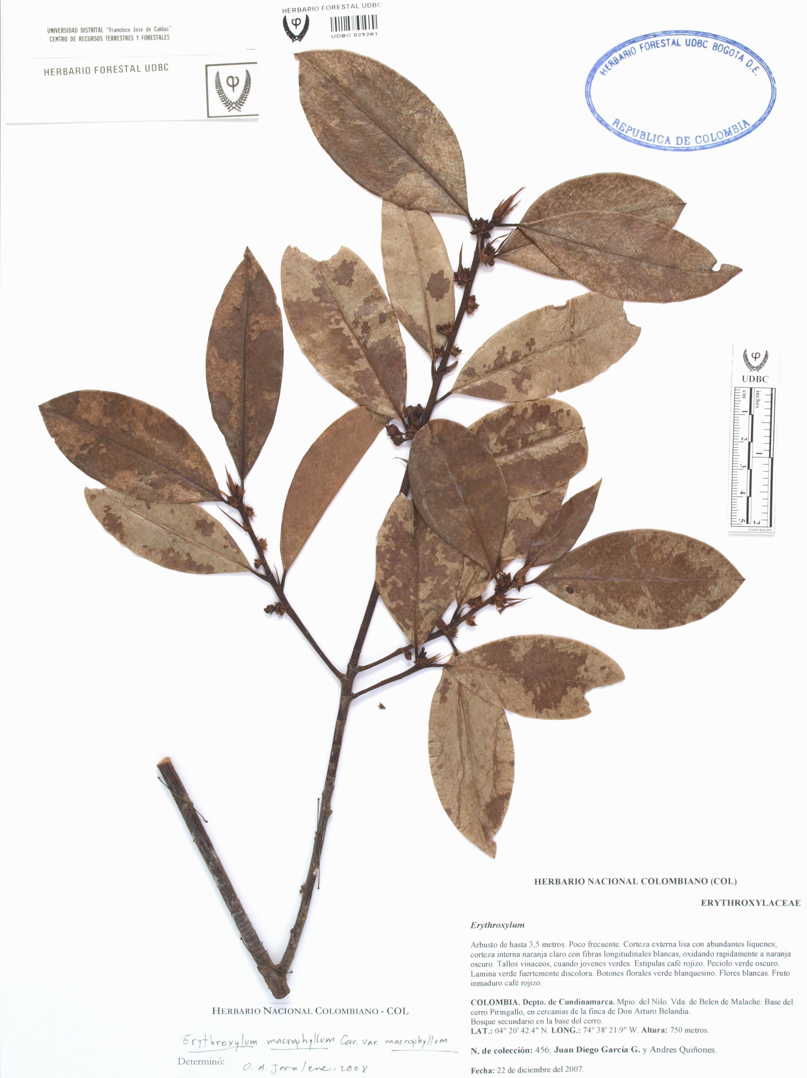 | dc.description | Fotografía del ejemplar García, J. 456, determinado como Erythroxylum macrophyllum var. macrophyllum en el año 2008 | |