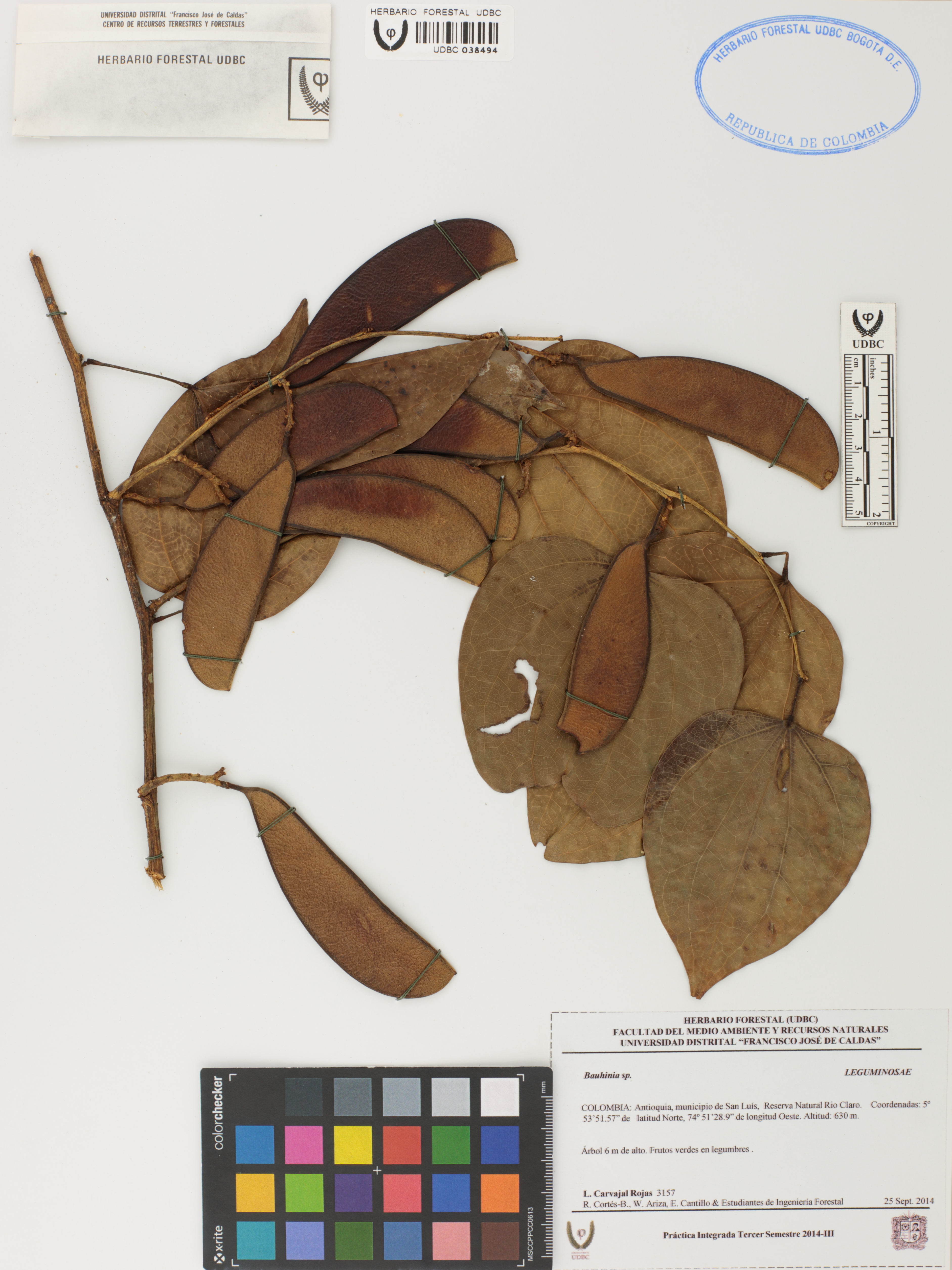 Fotografía del ejemplar Carvajal, L. 3157, determinado como Bauhinia sp.