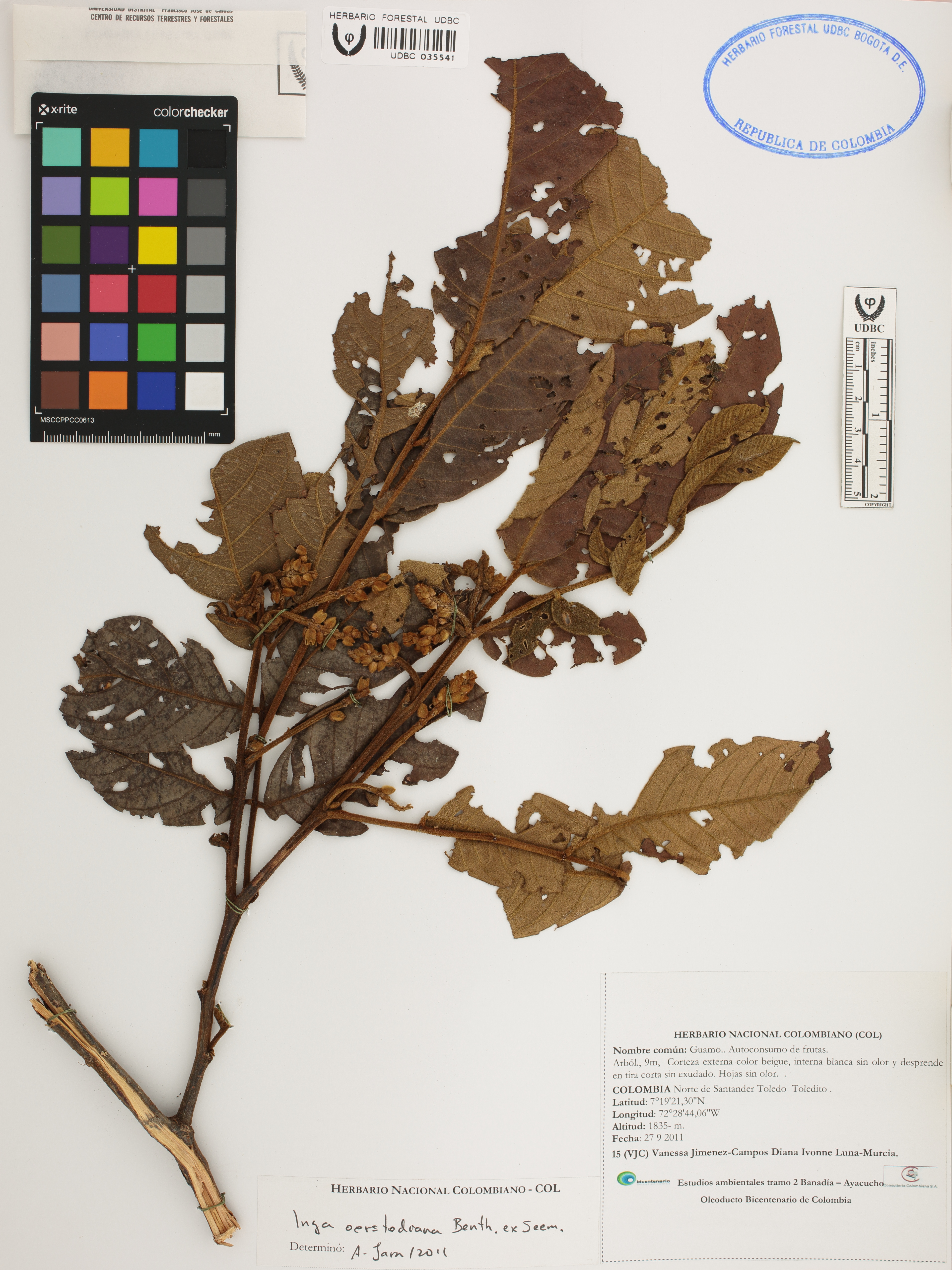 Fotografía del ejemplar Jiménez-Campos, V. 15, determinado como Inga oerstediana en el año 2011