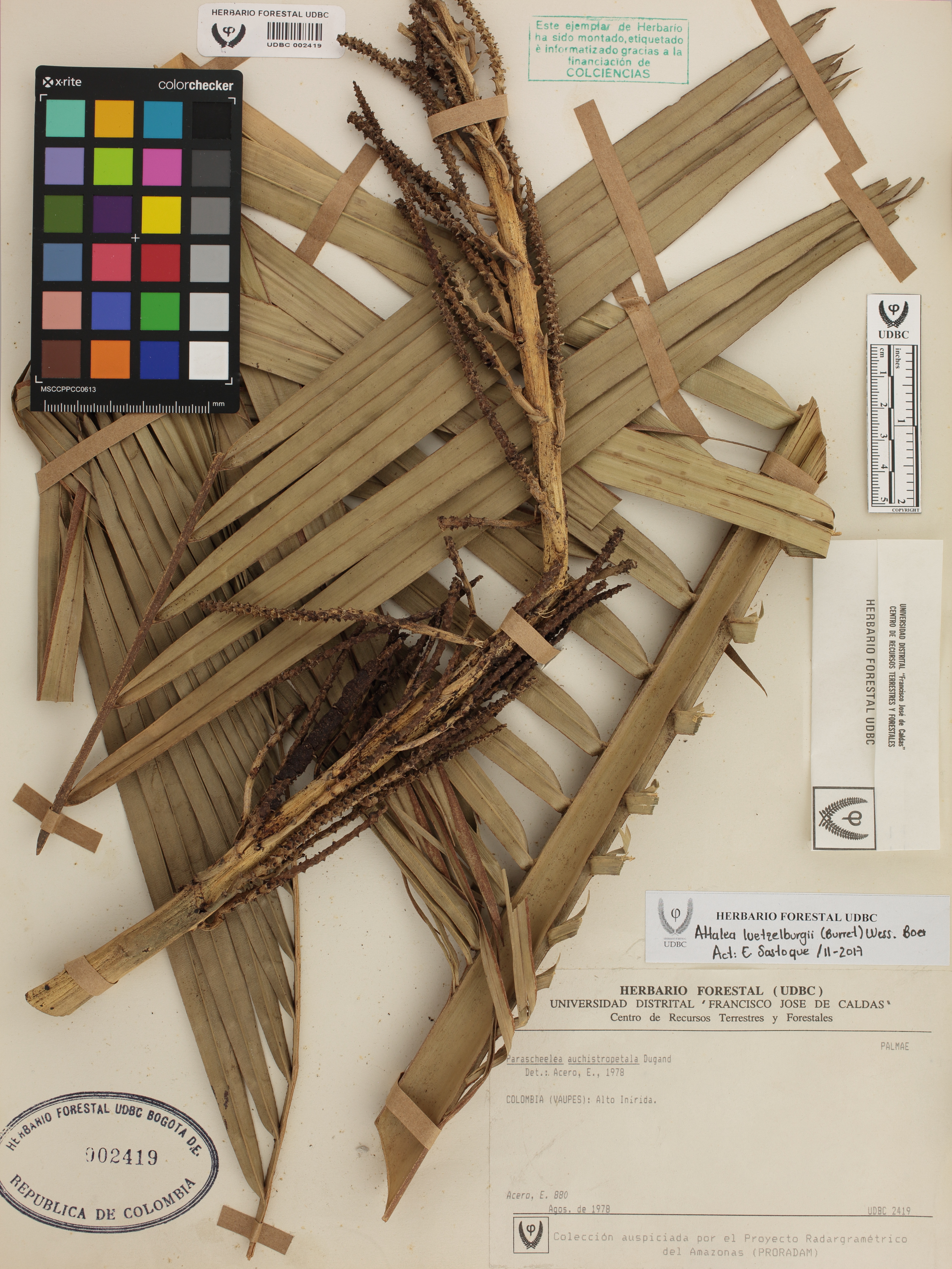 Fotografía del ejemplar Acero, E. 880, determinado como Attalea luetzelburgii en el año 1978