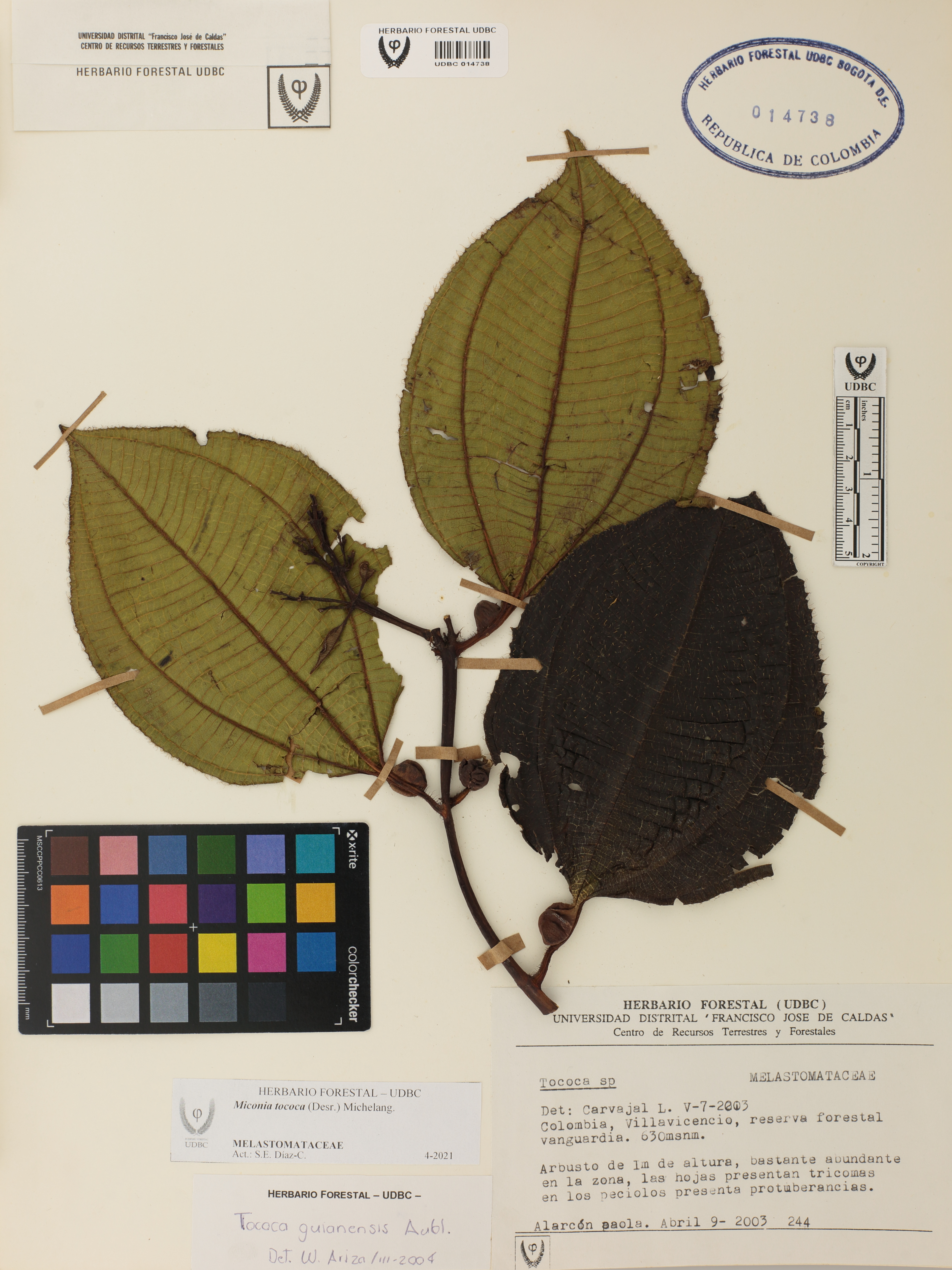 Fotografía del ejemplar Alarcón, P. 244, determinado como Miconia tococa en el año 2004