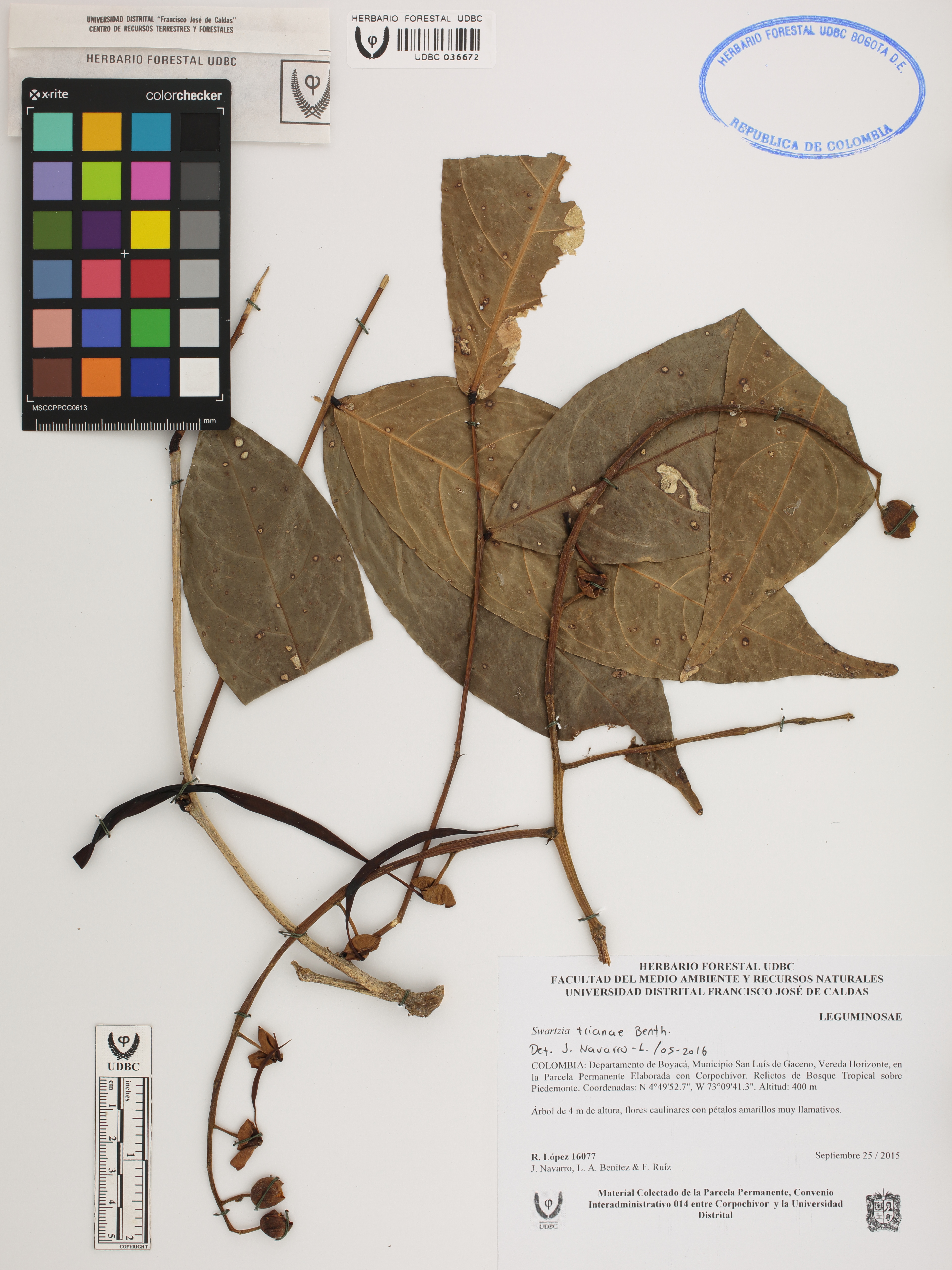Fotografía del ejemplar López, R. 16077, determinado como Swartzia trianae en el año 2016