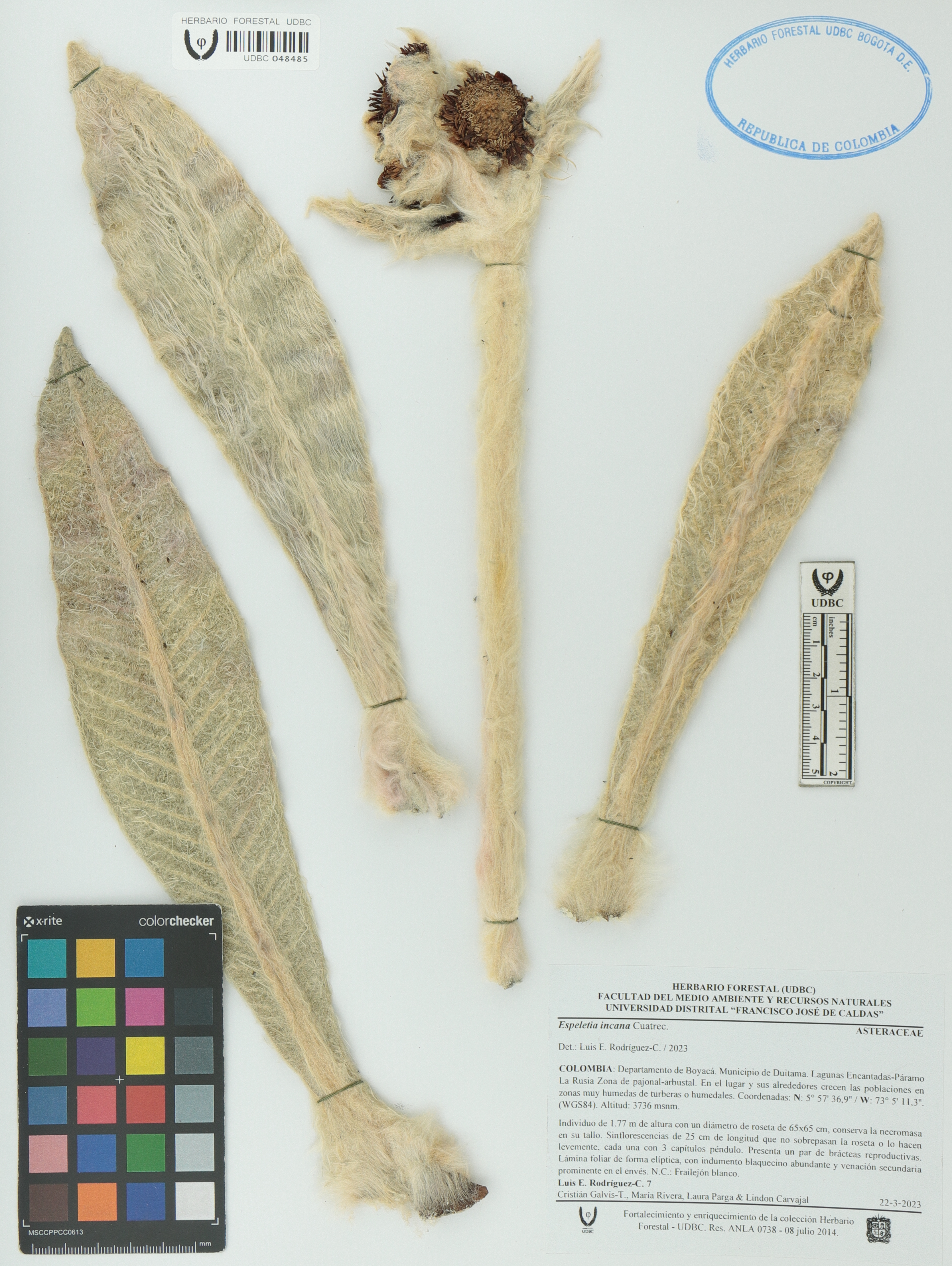 Fotografía del ejemplar Rodríguez-C., Luis 7, determinado como Espeletia incana en el año 2023