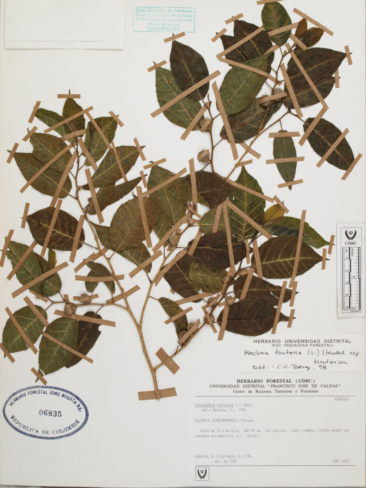Fotografía del ejemplar Mahecha, G. 7196, determinado como Maclura tinctoria subsp. tinctoria en el año 1998