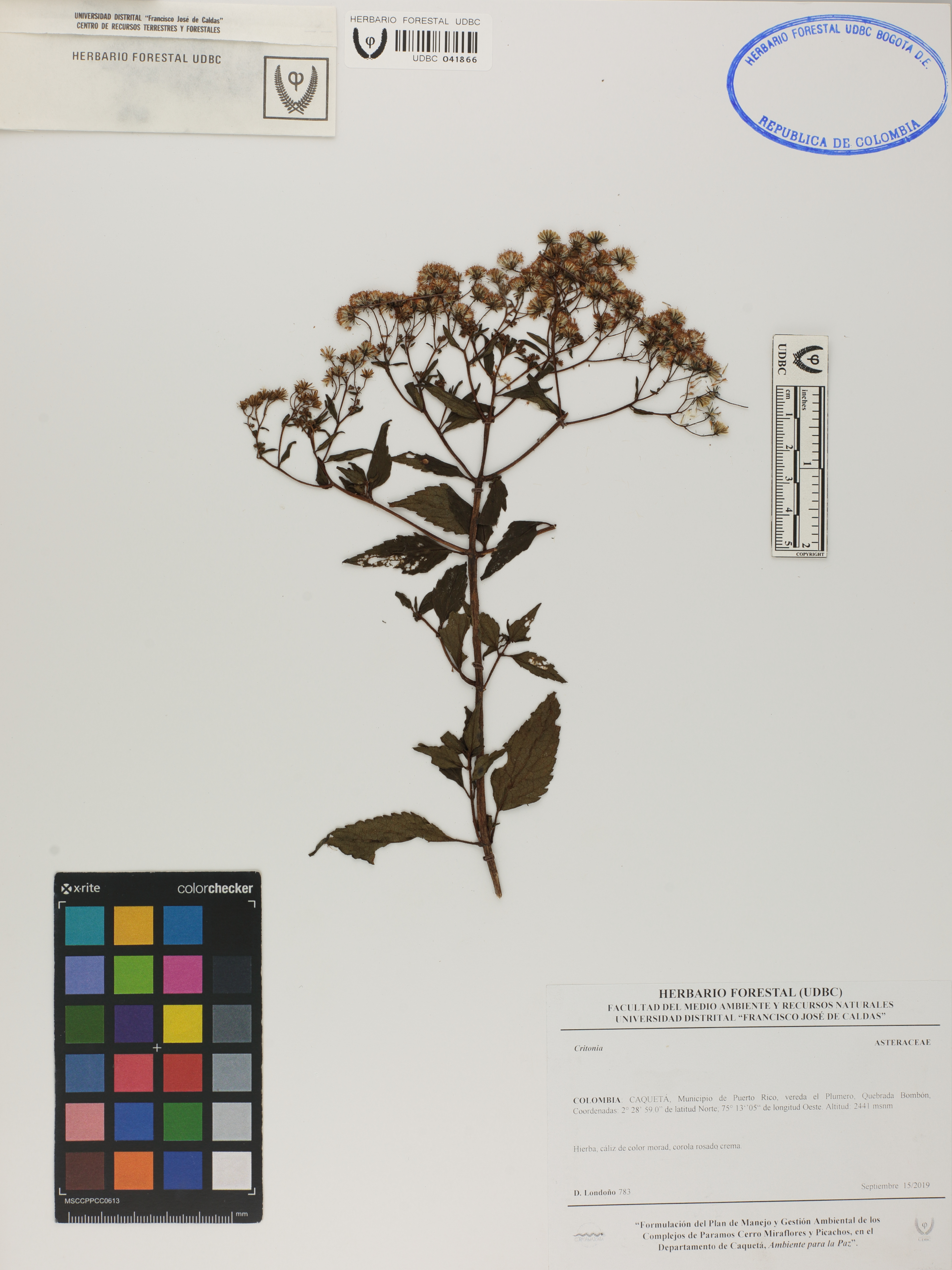 Fotografía del ejemplar Londoño, D. 783, determinado como Critonia sp.