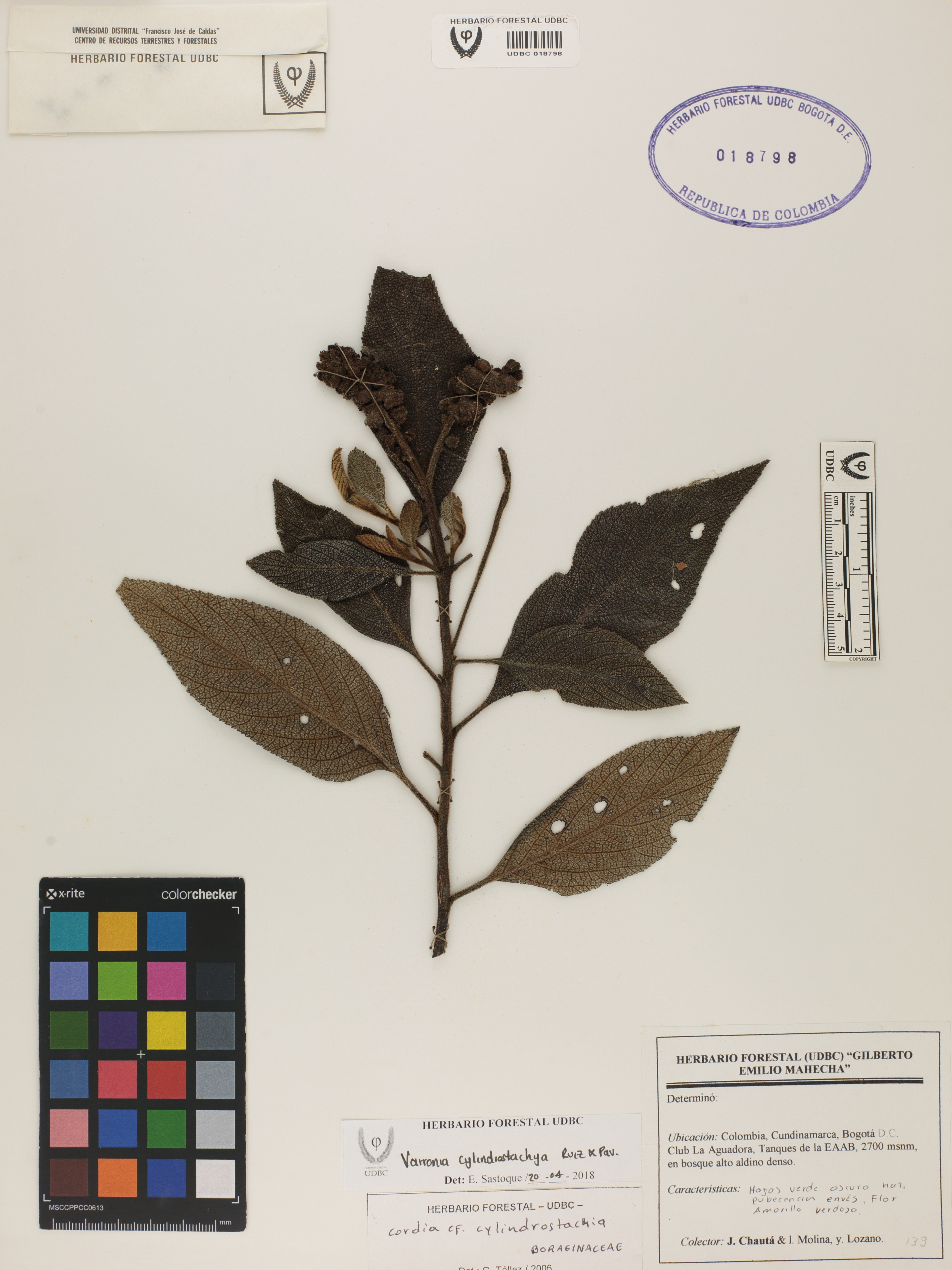 Fotografía del ejemplar Chautá, J., determinado como Varronia cylindristachya en el año 2006