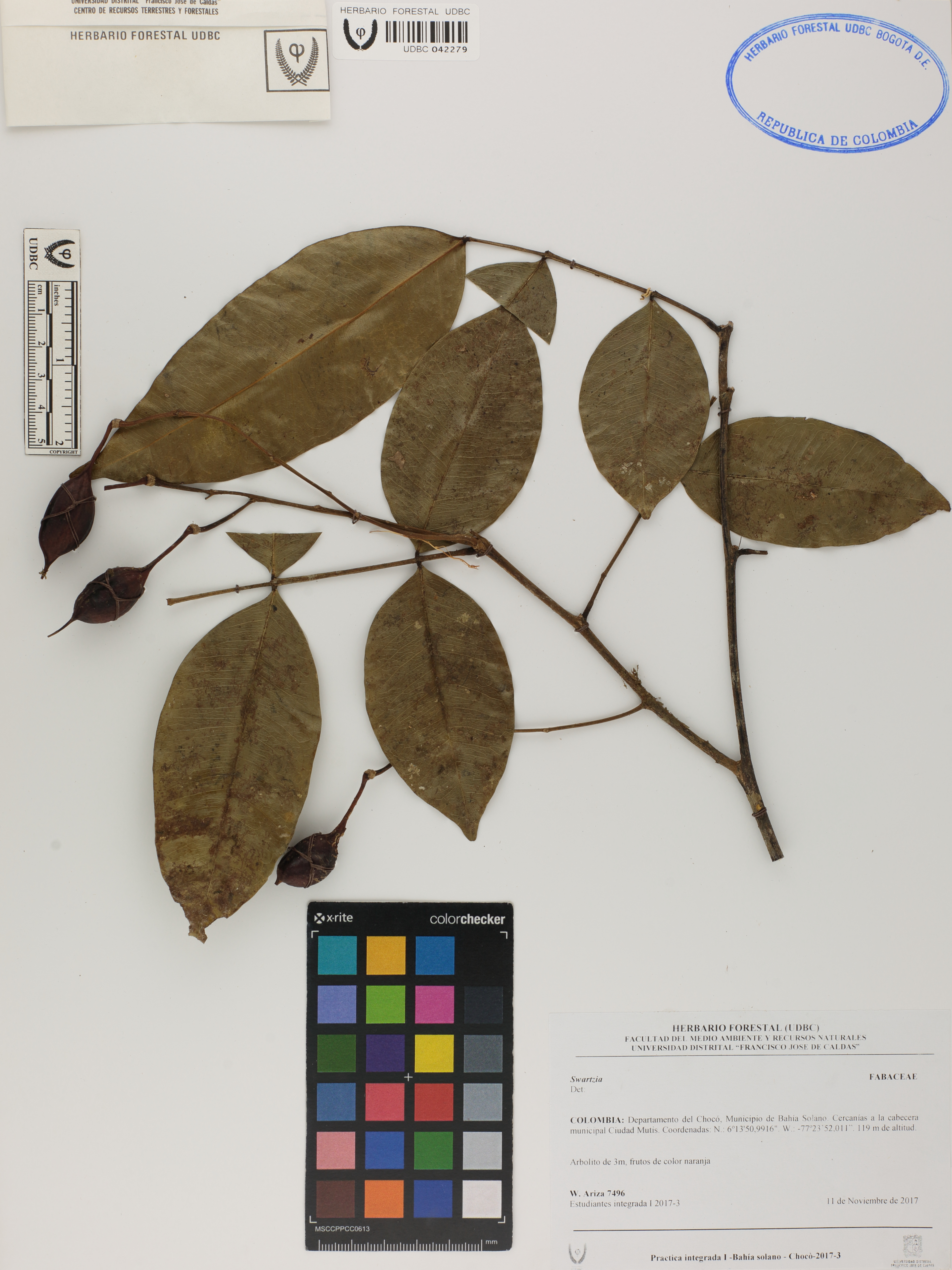 Fotografía del ejemplar Ariza, W. 7496, determinado como Swartzia sp.
