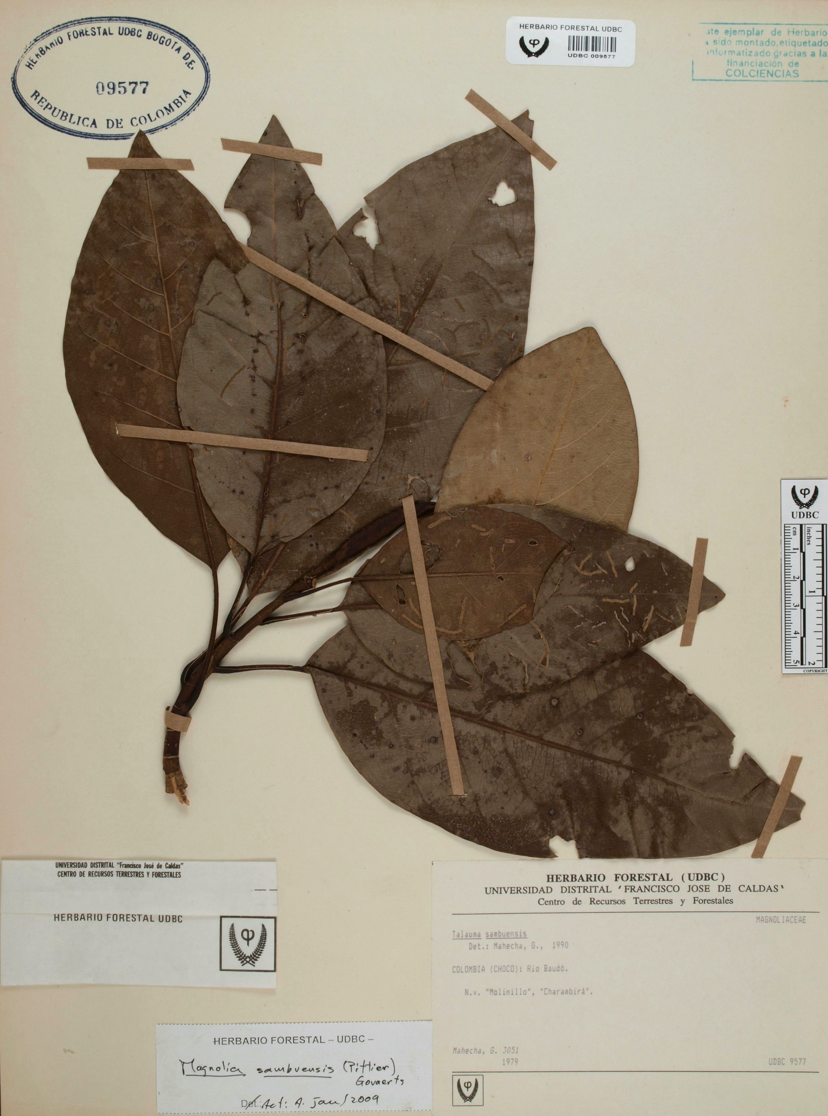 Fotografía del ejemplar Mahecha, G. 3051, determinado como Magnolia sambuensis en el año 1990