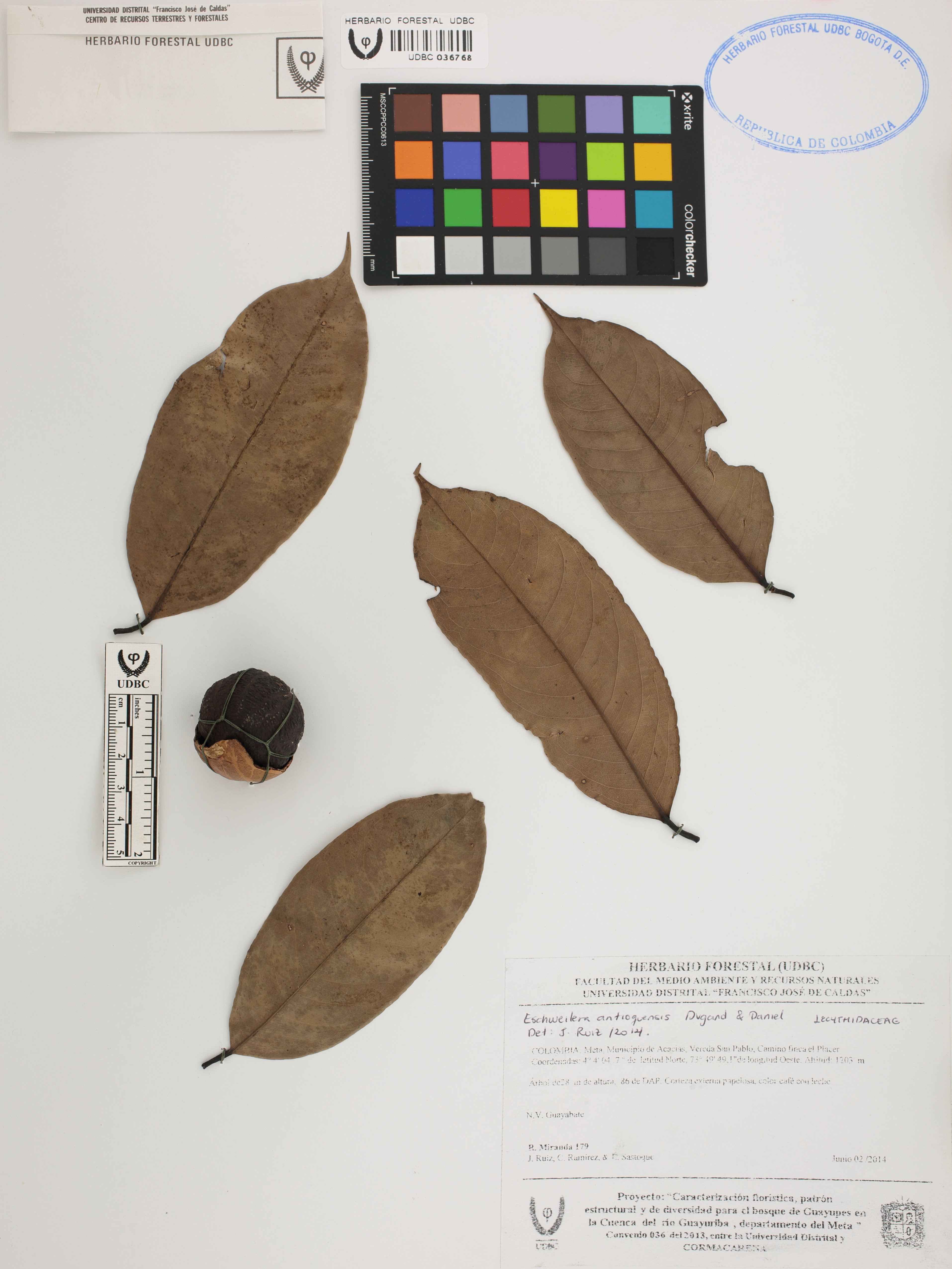 Fotografía del ejemplar Miranda, R. 479, determinado como Eschweilera antioquensis en el año 2014