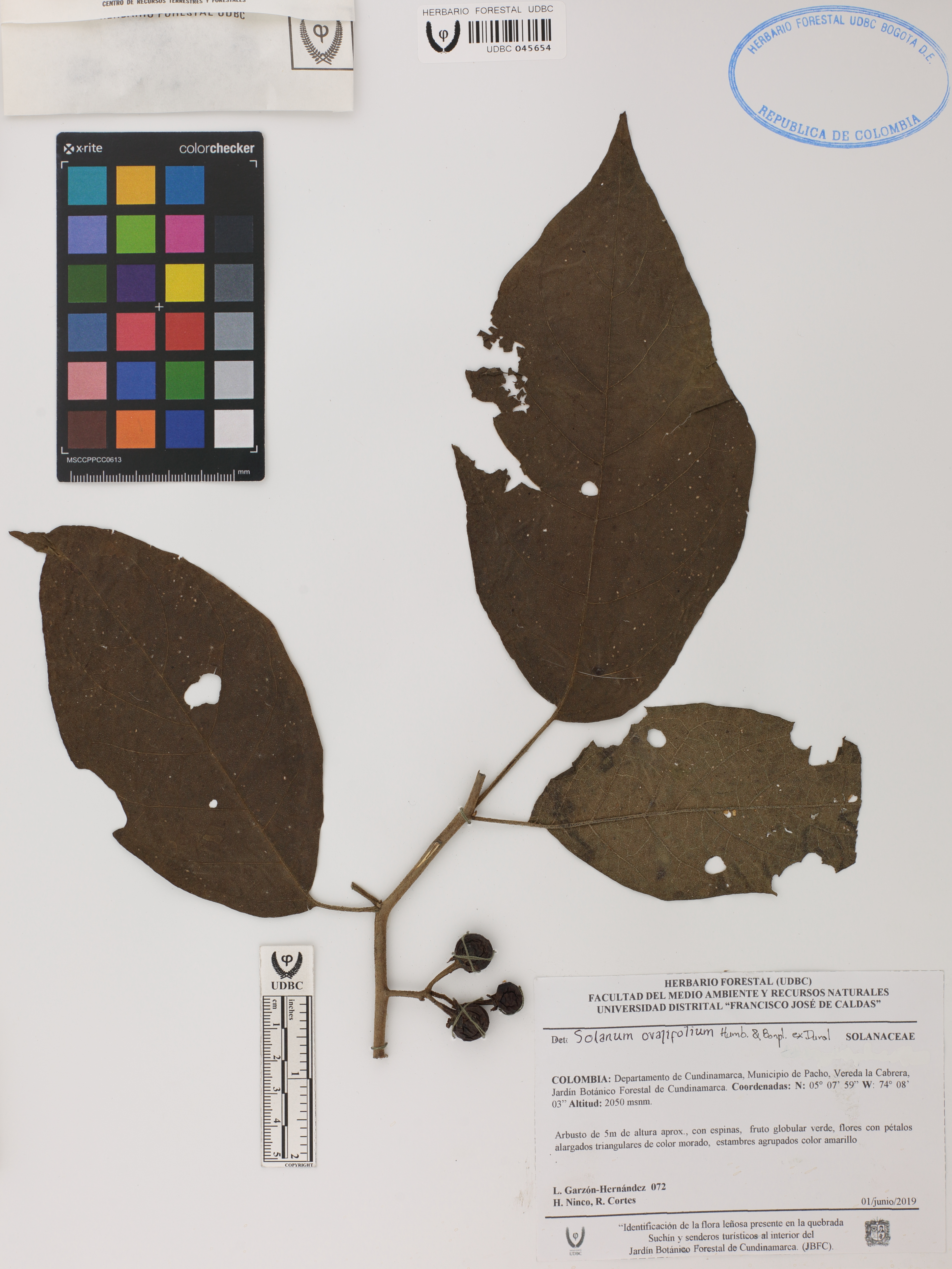 | dc.description | Fotografía del ejemplar Garzón-Hernández, L. 72, determinado como Solanum ovalifolium en el año 2019 | |