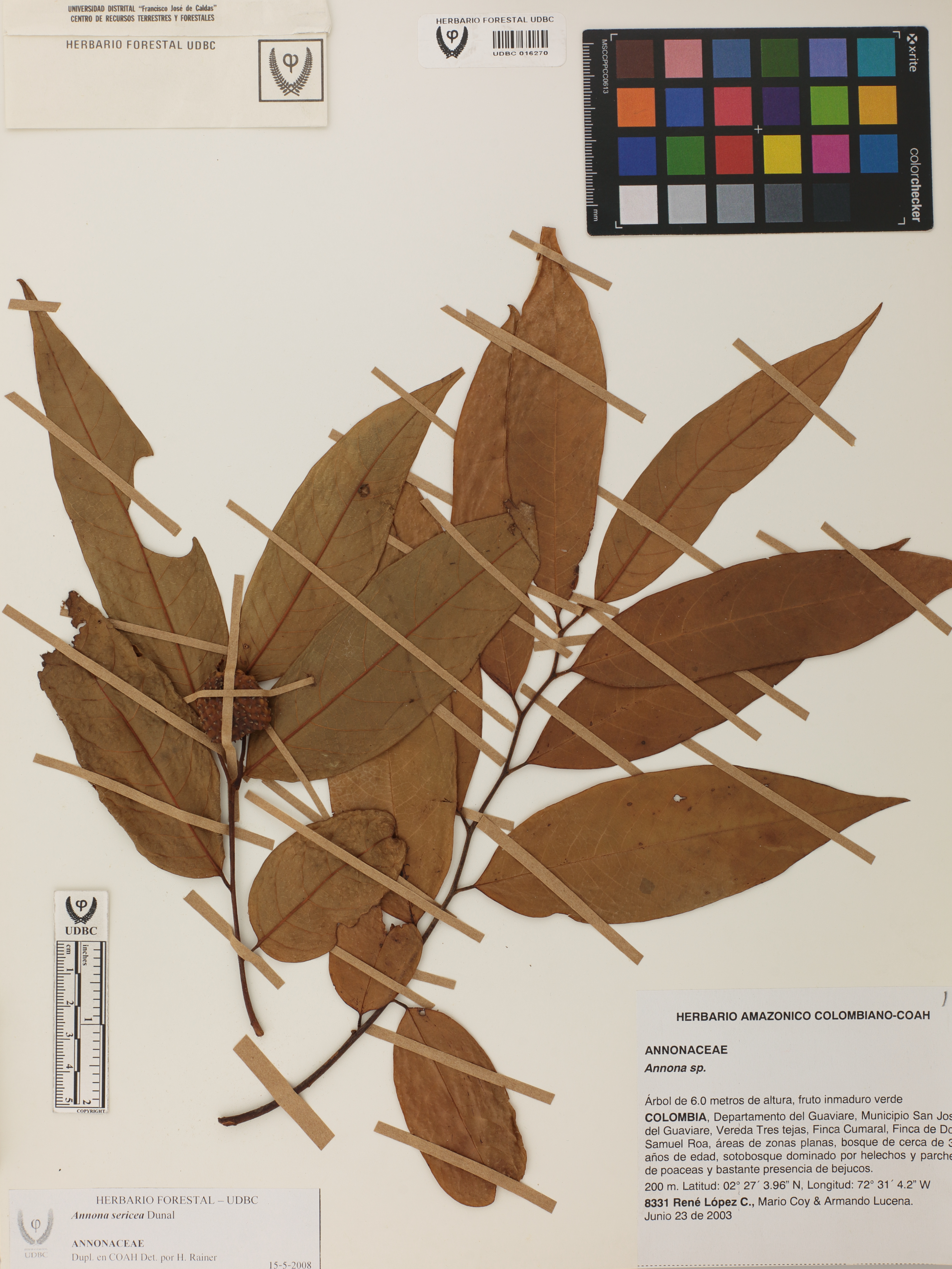 | dc.description | Fotografía del ejemplar López, R. 8331, determinado como Annona sericea en el año 2008 | |