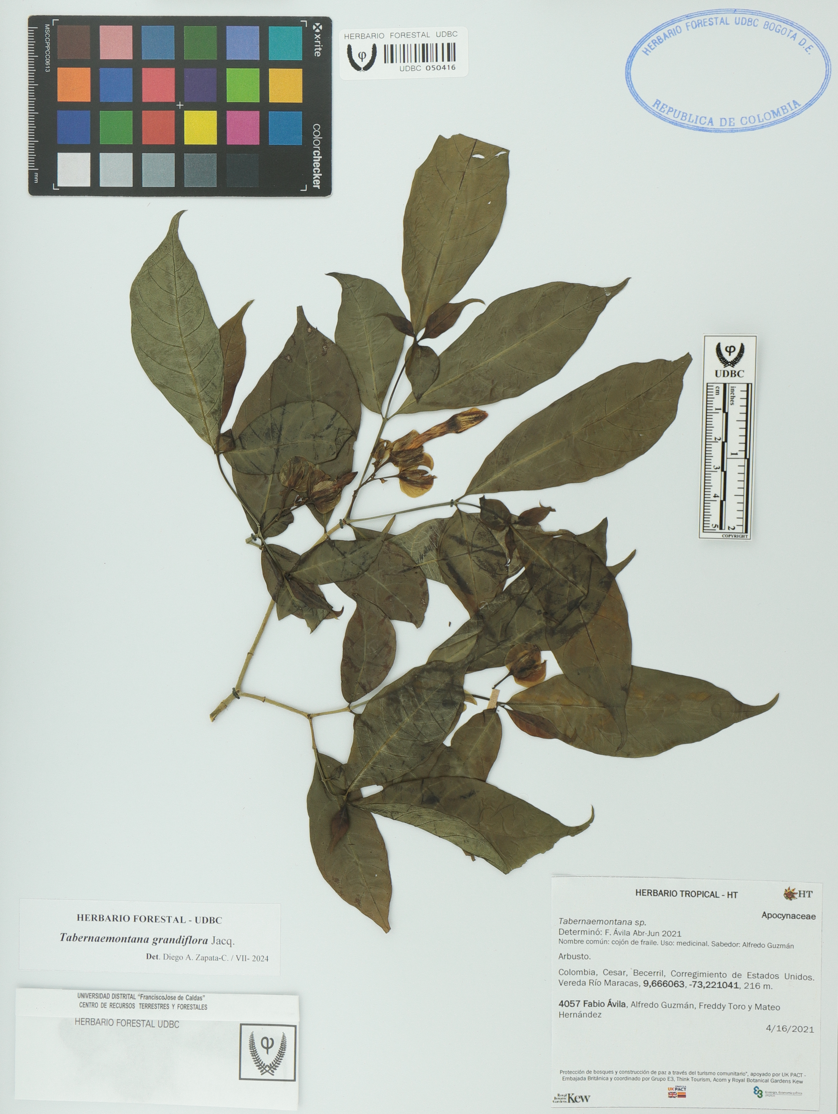 Fotografía del ejemplar Ávila, F. 4057, determinado como Tabernaemontana grandiflora en el año 2024