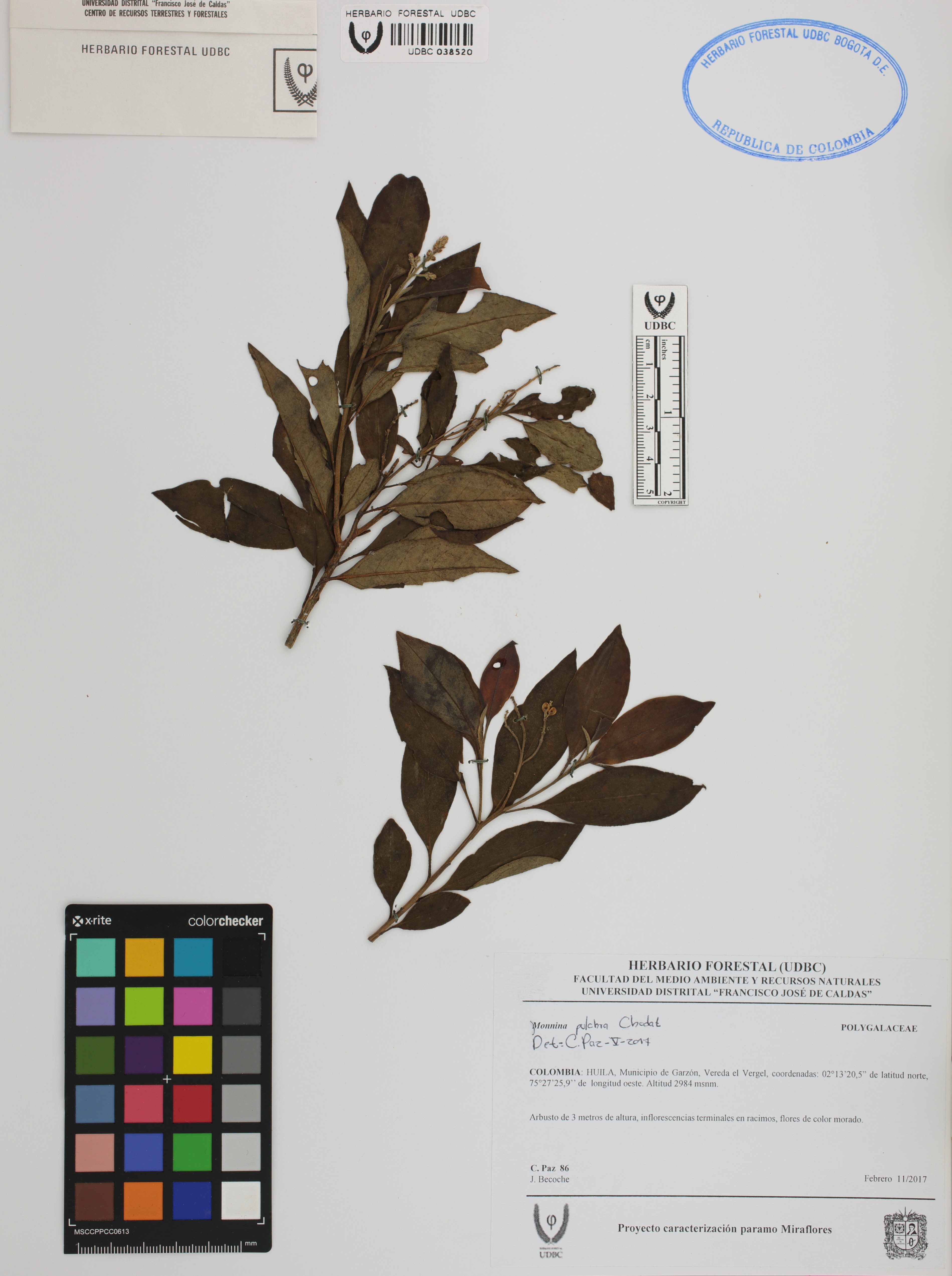 | dc.description | Fotografía del ejemplar Paz, C. 86, determinado como Monnina pulchra en el año 2014 | |