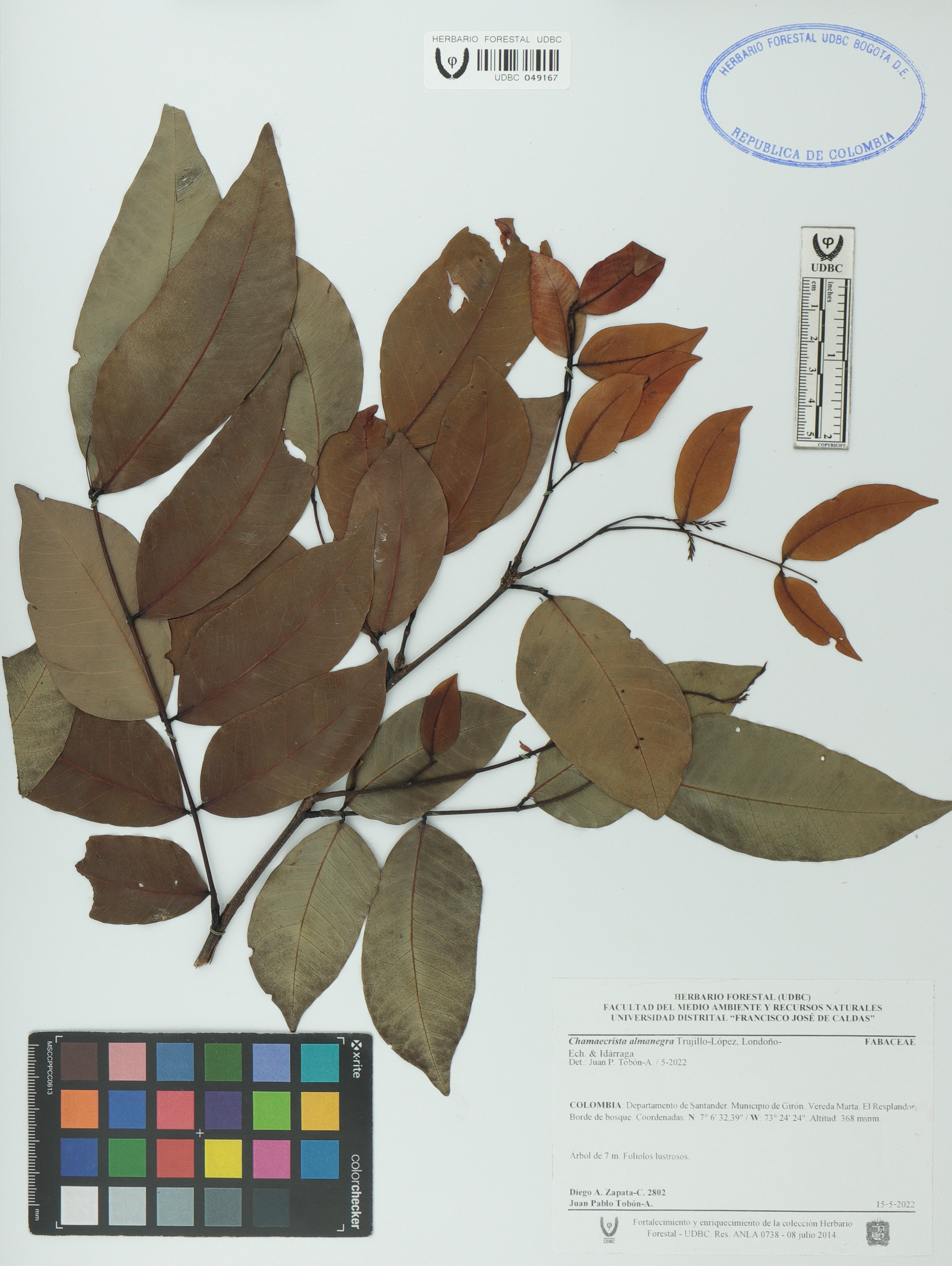 Fotografía del ejemplar Zapata-C., D. 2802, determinado como Chamaecrista almanegra en el año 2022