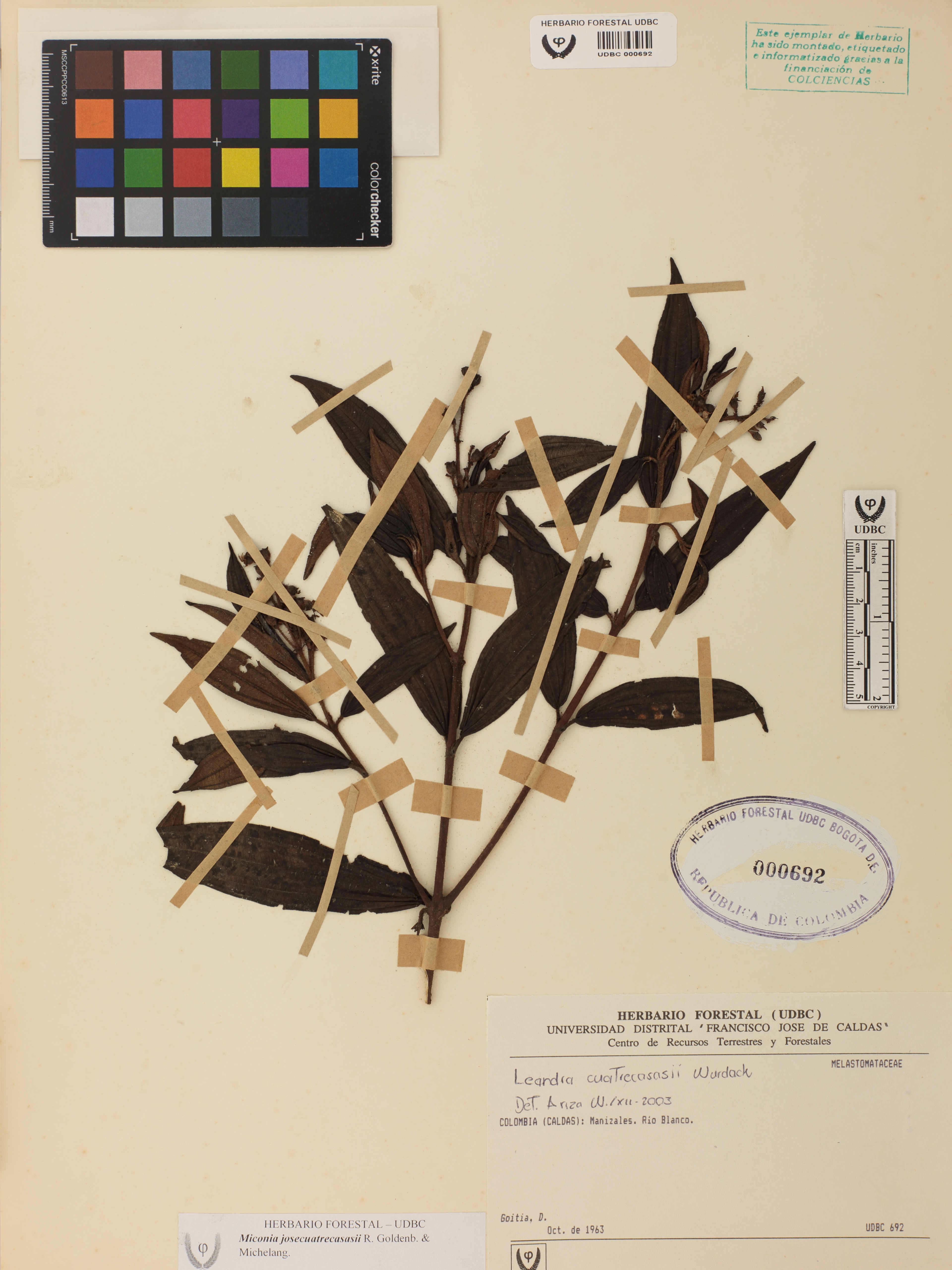 Fotografía del ejemplar Goitia, D., determinado como Miconia josecuatrecasasii en el año 2003