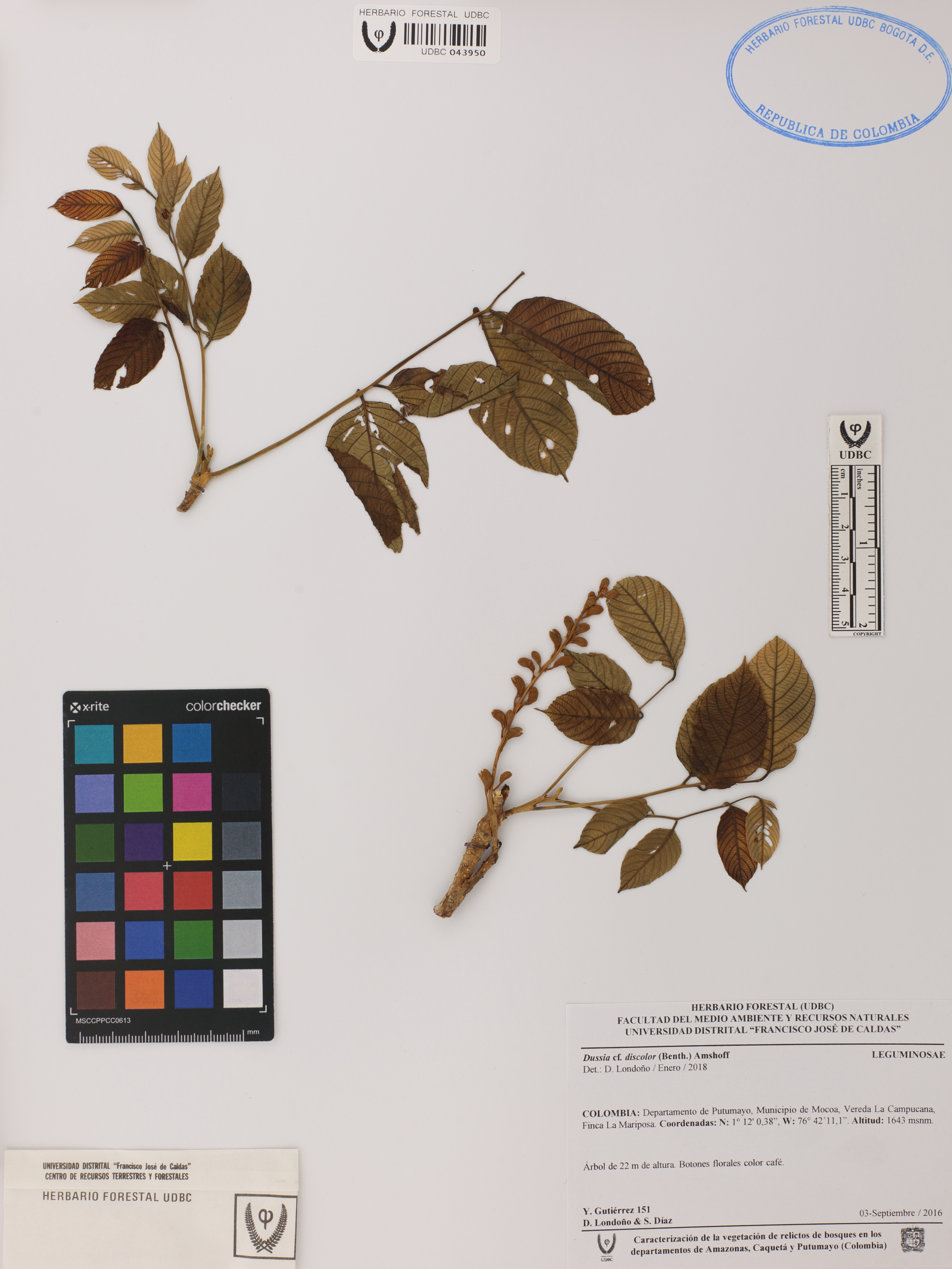 Fotografía del ejemplar Gutiérrez, Y. 151, determinado como Dussia discolor en el año 2018