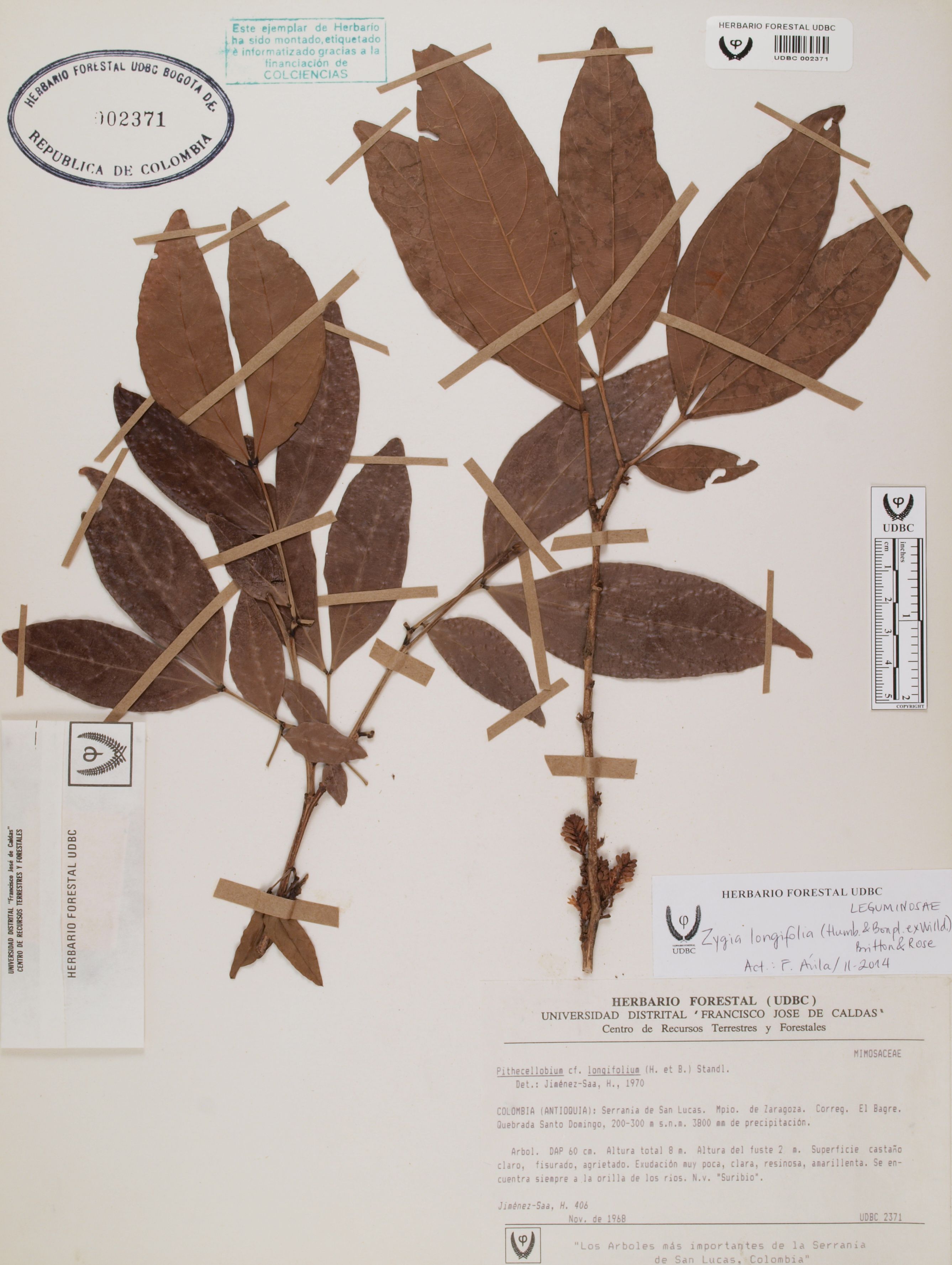 Fotografía del ejemplar Jiménez-Saa, H. 406, determinado como Zygia longifolia en el año 2014