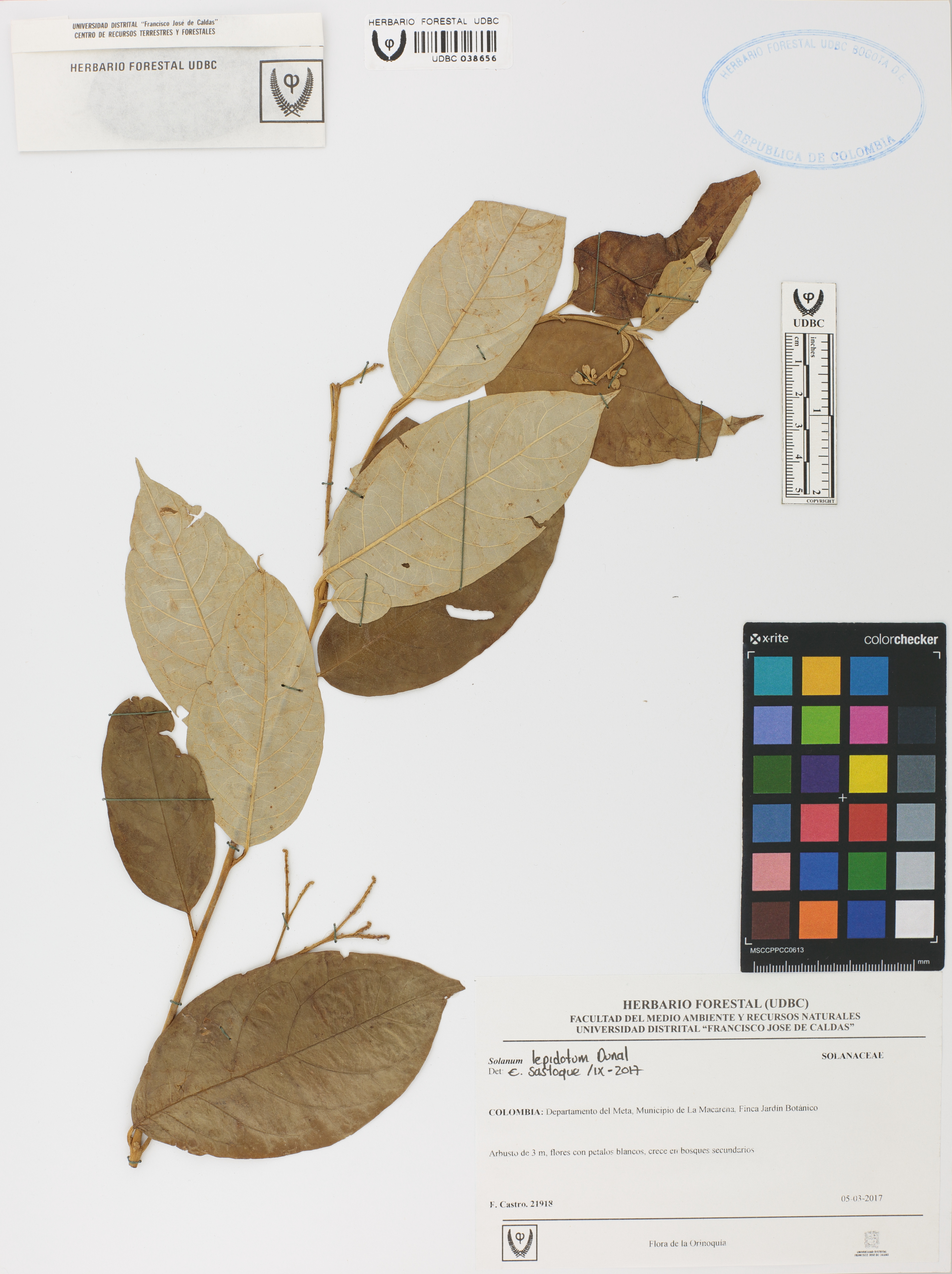 Fotografía del ejemplar Castro, F. 21918, determinado como Solanum lepidotum en el año 2017