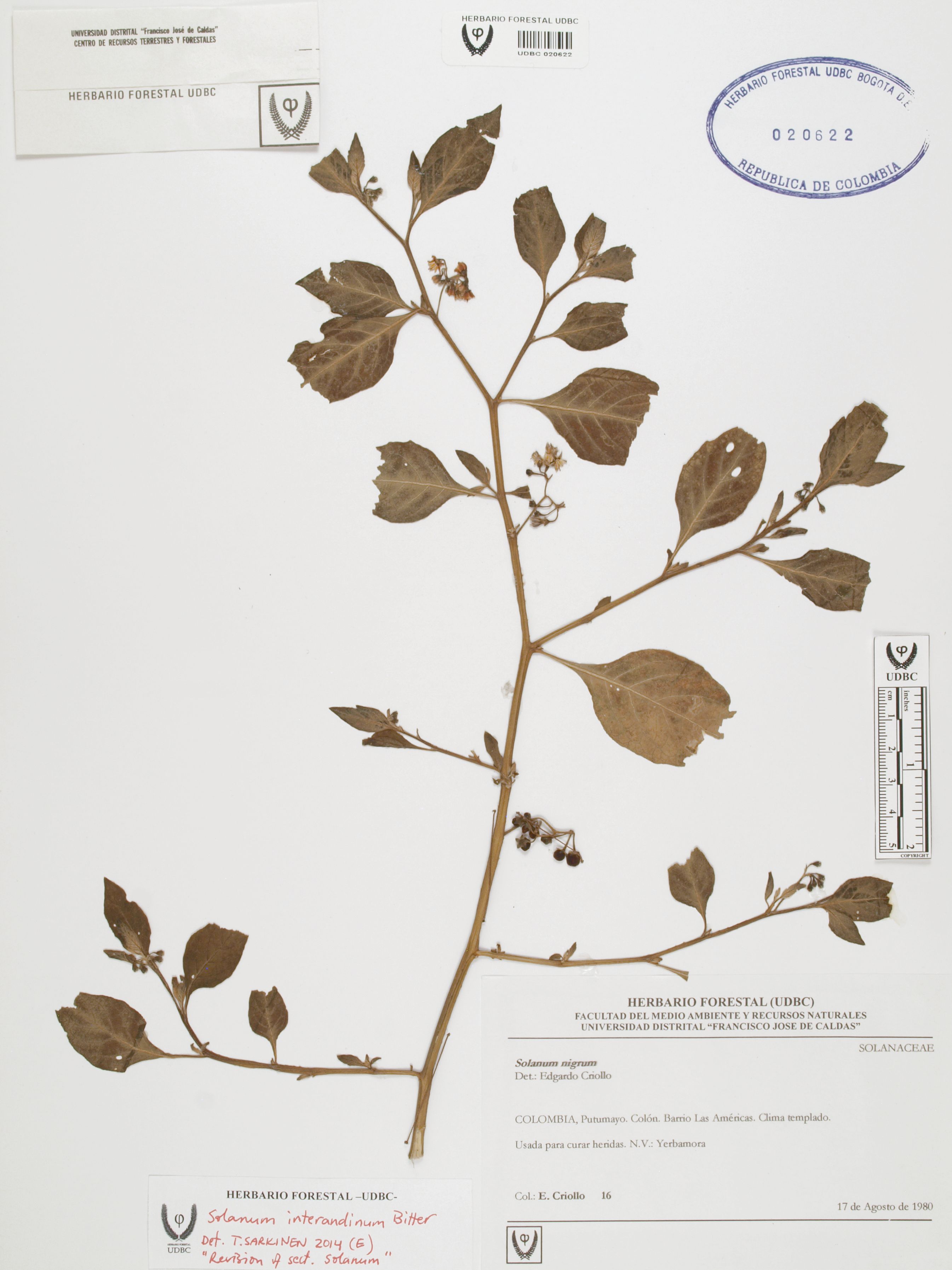 Fotografía del ejemplar Criollo, E. 16, determinado como Solanum interandinum en el año 2014
