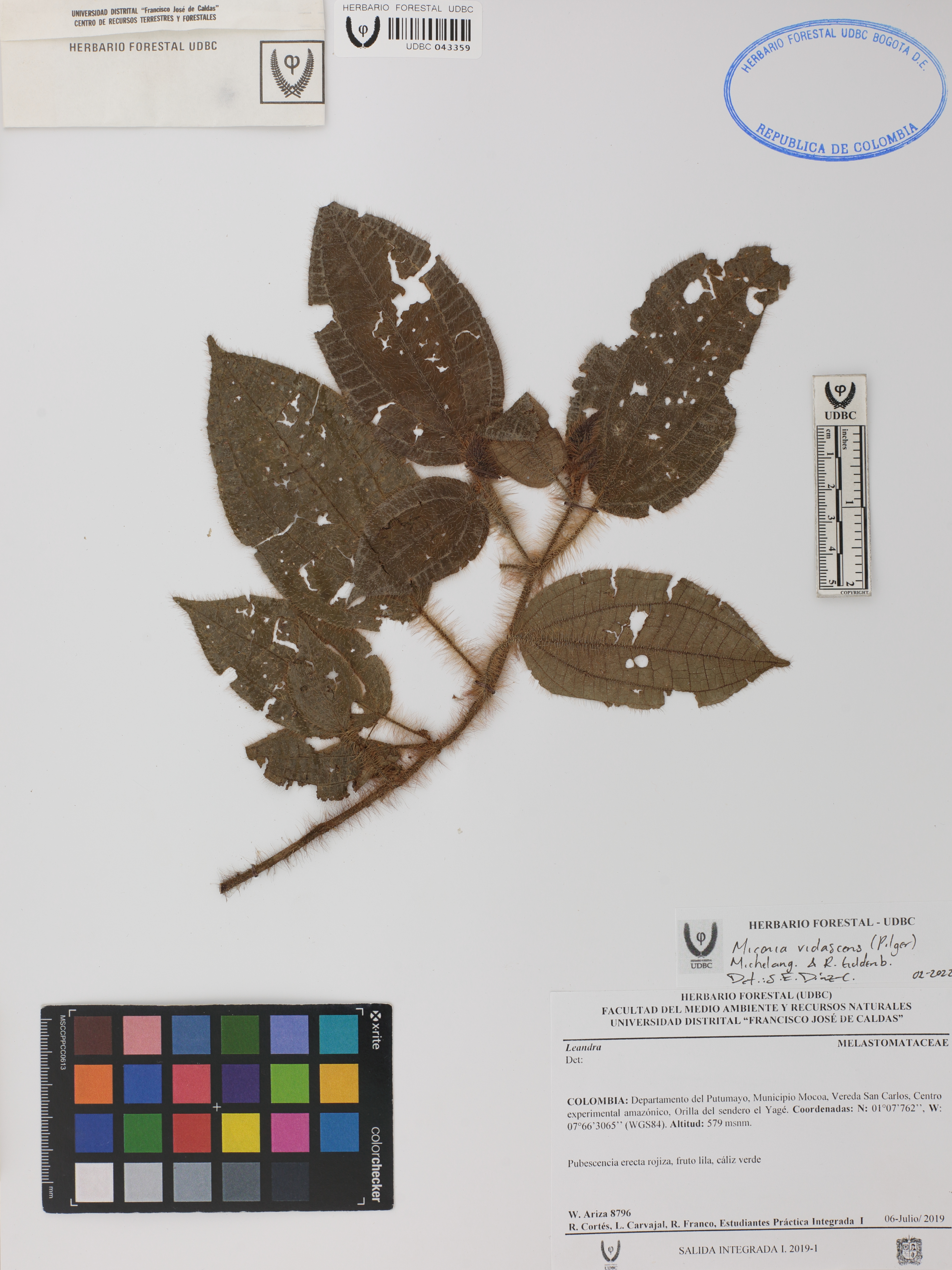 Fotografía del ejemplar Ariza, W. 8796, determinado como Miconia violascens en el año 2022