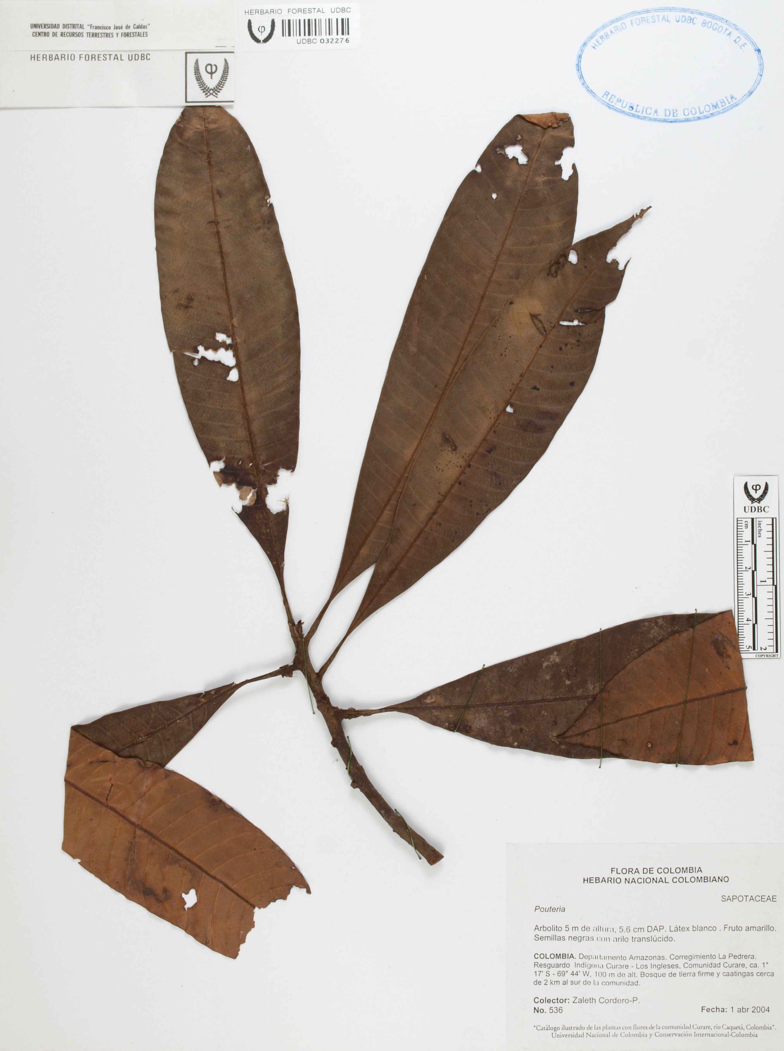 Fotografía del ejemplar Cordero-P., Z. 536, determinado como Pouteria sp.
